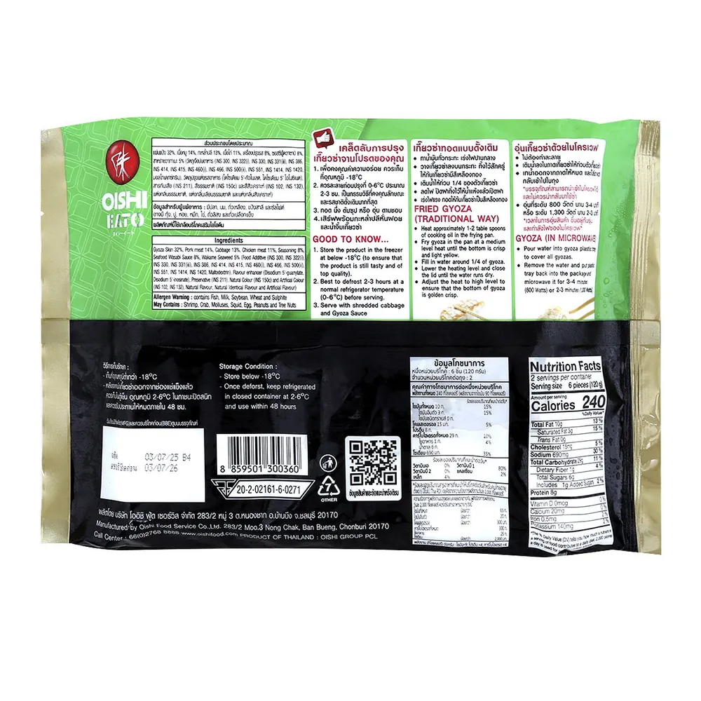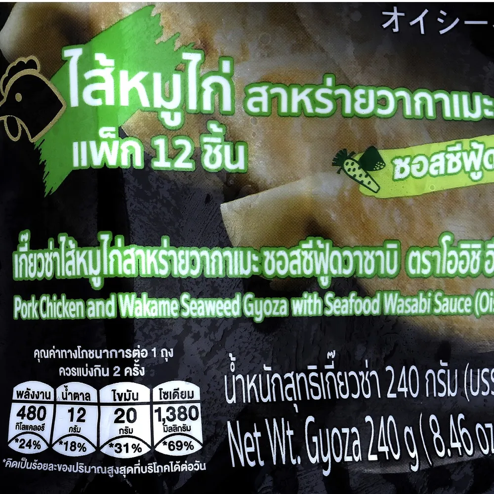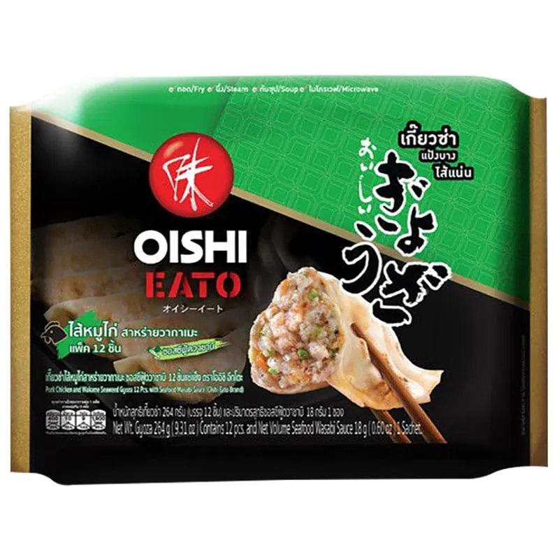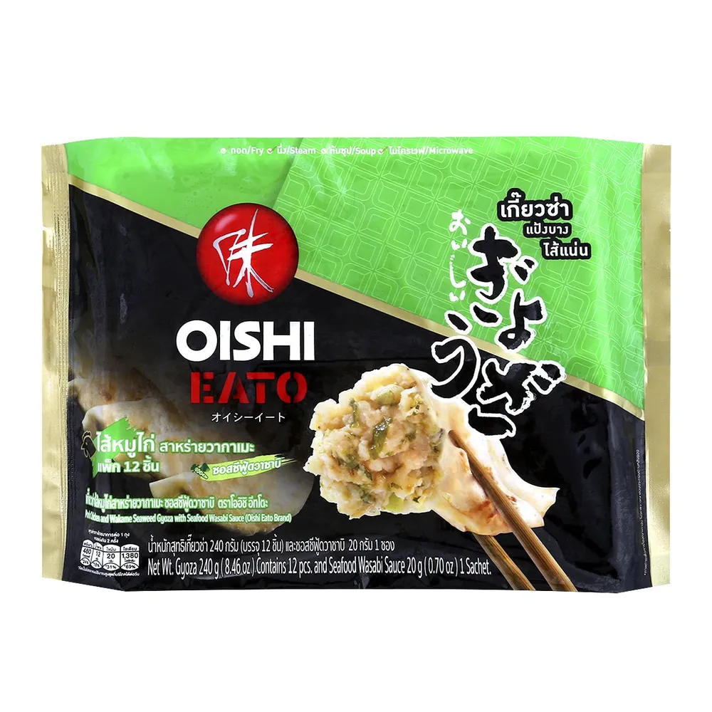 โออิชิ อีทโตะ เกี๊ยวซ่าไส้หมูไก่สาหร่ายวากาเมะ พร้อมซอสซีฟู้ดวาซาบิ 240 ก.