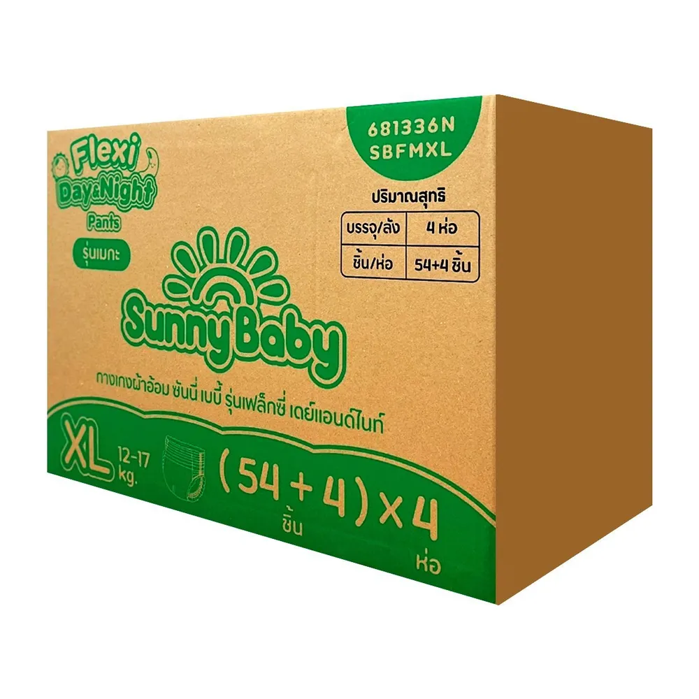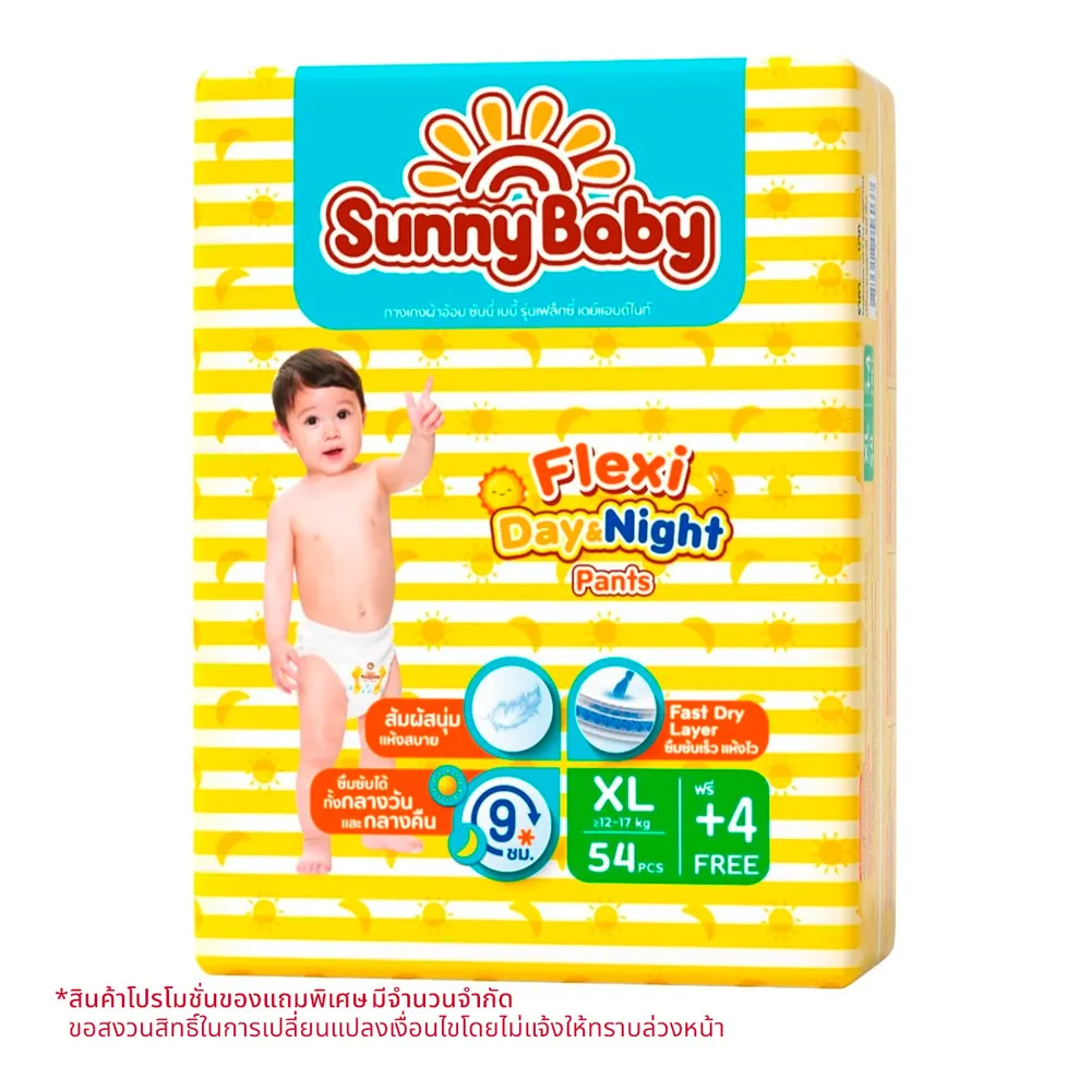 ซันนี่ เบบี้ เฟล็กซี่ เดย์แอนด์ไนท์ แพ้นท์ กางเกงผ้าอ้อม ขนาด XL 54+4 ชิ้น x 4 ห่อ