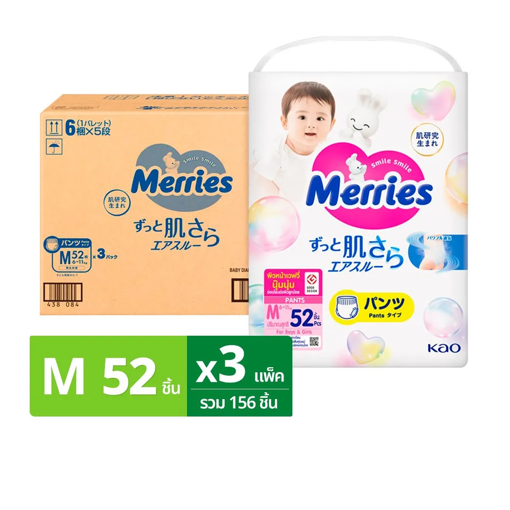 เมอร์รี่ส์ ผ้าอ้อมเด็กชนิดกางเกง ไซส์ M 52 ชิ้น แพ็ค 3