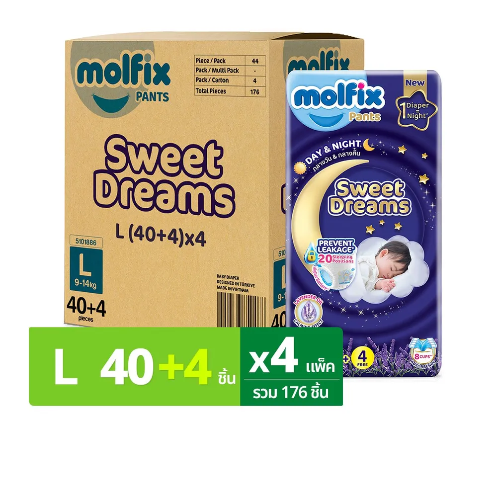 โมลฟิกซ์ สวีทดรีมส์ แพ้นส์ ขนาด L (40+4) ชิ้น x 4 แพ็ค