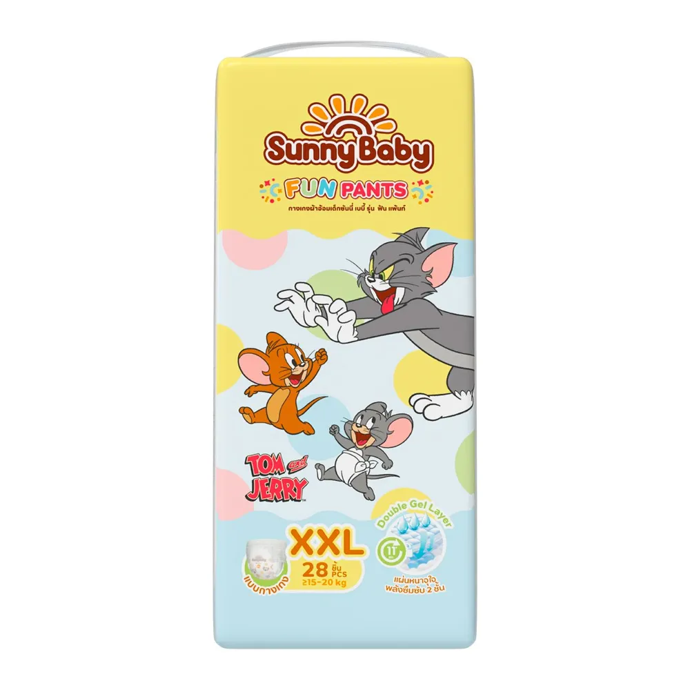 ซันนี่ เบบี้ x ทอม แอนด์ เจอร์รี่ ผ้าอ้อมเด็กแบบกางเกง รุ่น ฟัน แพ้นท์ จุดเด่นพลังซึมซับ 2 ชั้น แผ่นหนาจุใจ<br />