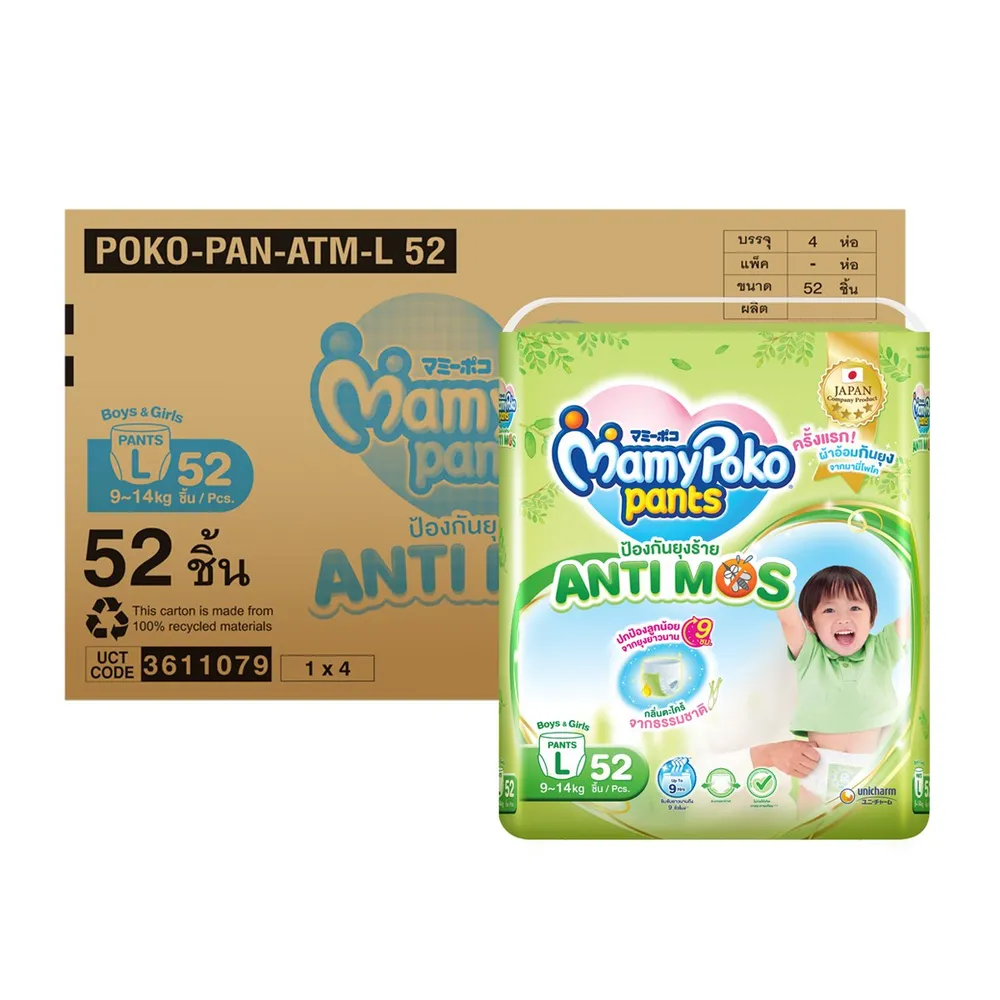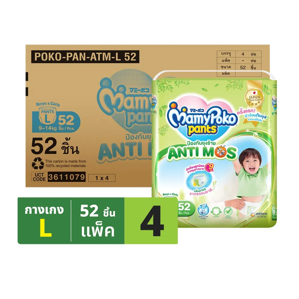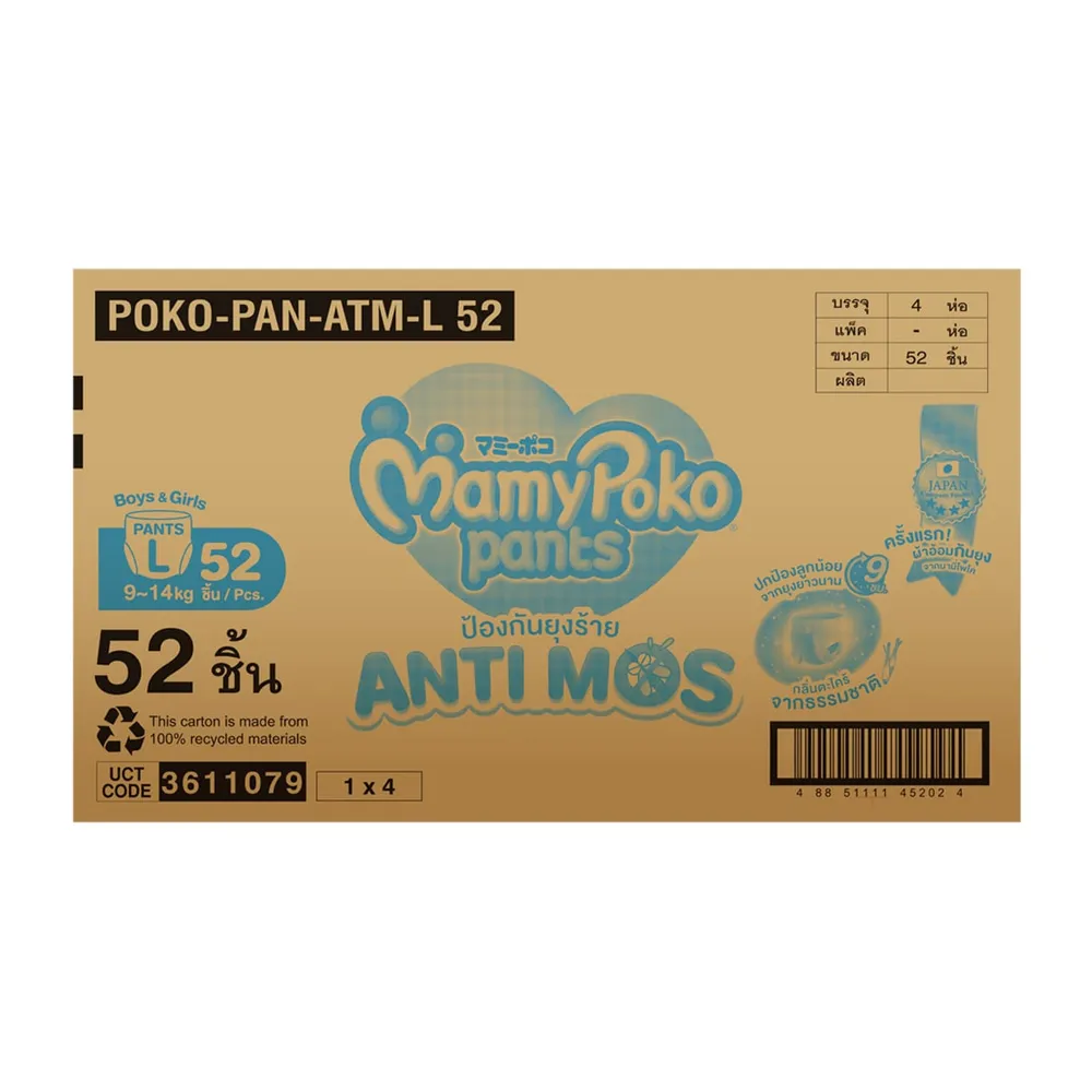 มามี่โพโค แพ้นท์ แอนติ-มอส กางเกงผ้าอ้อม ขนาด L 52 ชิ้น แพ็ค 4