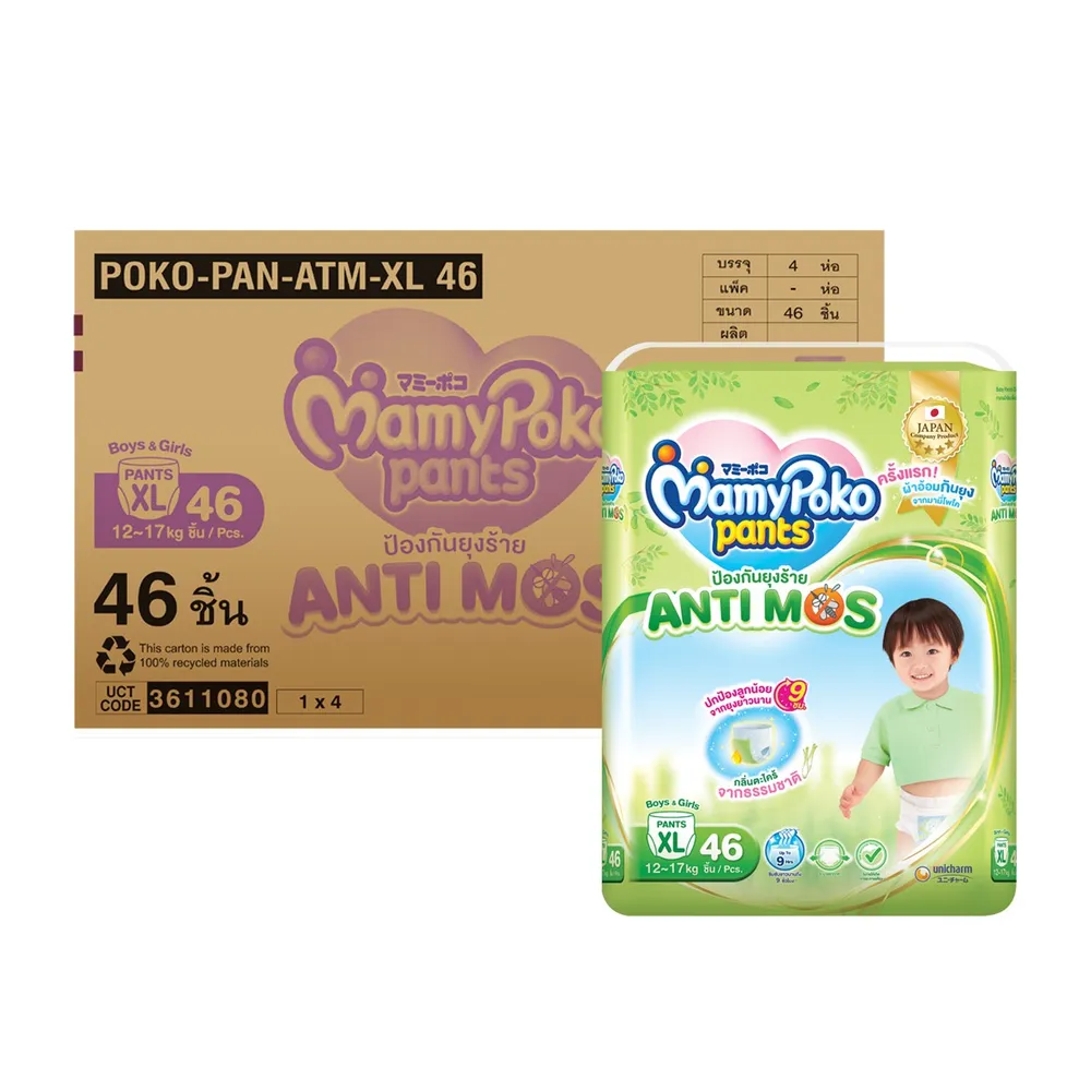 มามี่โพโค แพ้นท์ แอนติ-มอส กางเกงผ้าอ้อม ขนาด XL 46 ชิ้น แพ็ค 4
