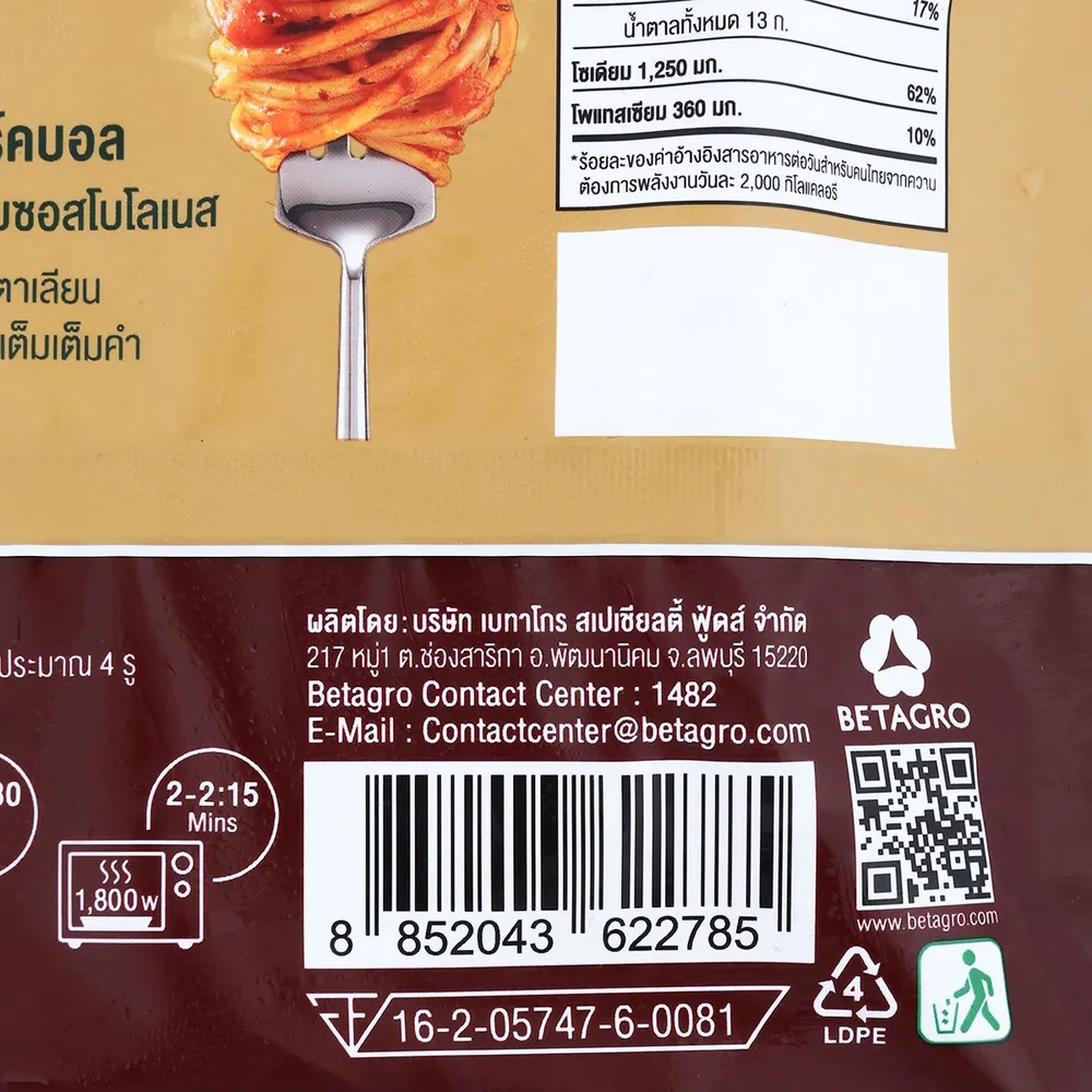 -&nbsp;เบทาโกร อาหารปรุงสำเร็จ สปาเก็ตตี้โบโลเนสพอร์คบอล<br />