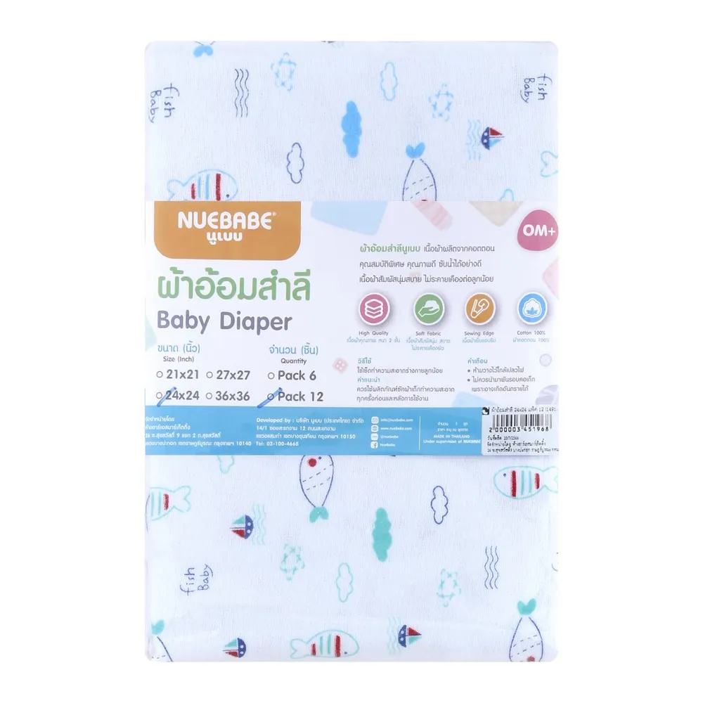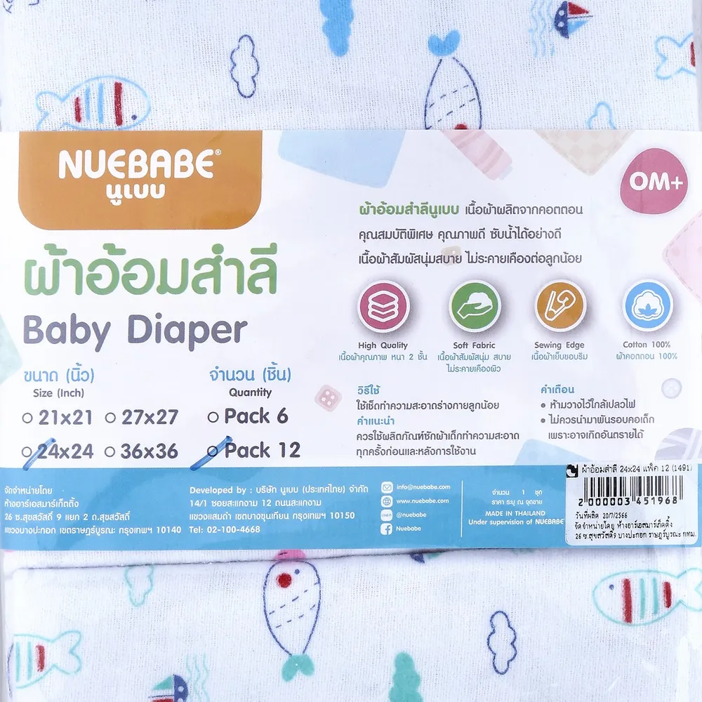 อาร์เอส ผ้าอ้อมสำลี เกรด A ขนาด 24 x 24 นิ้ว แพ็ค 12 ผืน