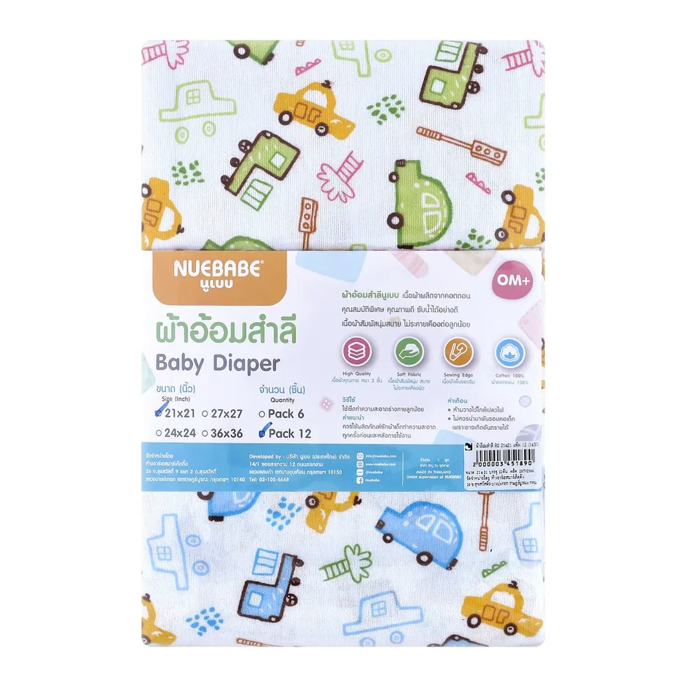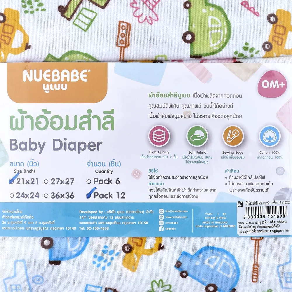 อาร์เอส ผ้าอ้อมสำลี เกรด A ขนาด 21 x 21 นิ้ว แพ็ค 12 ผืน