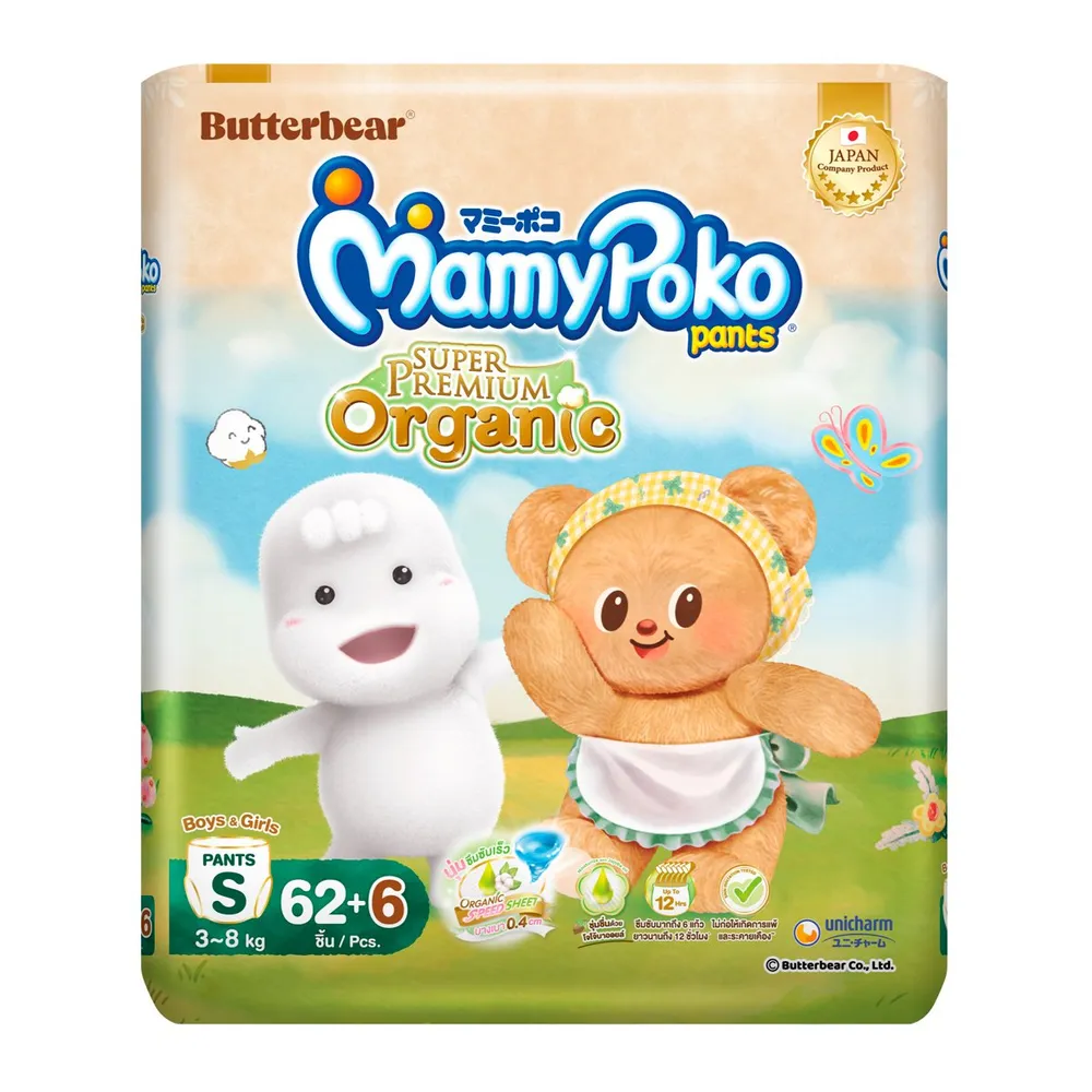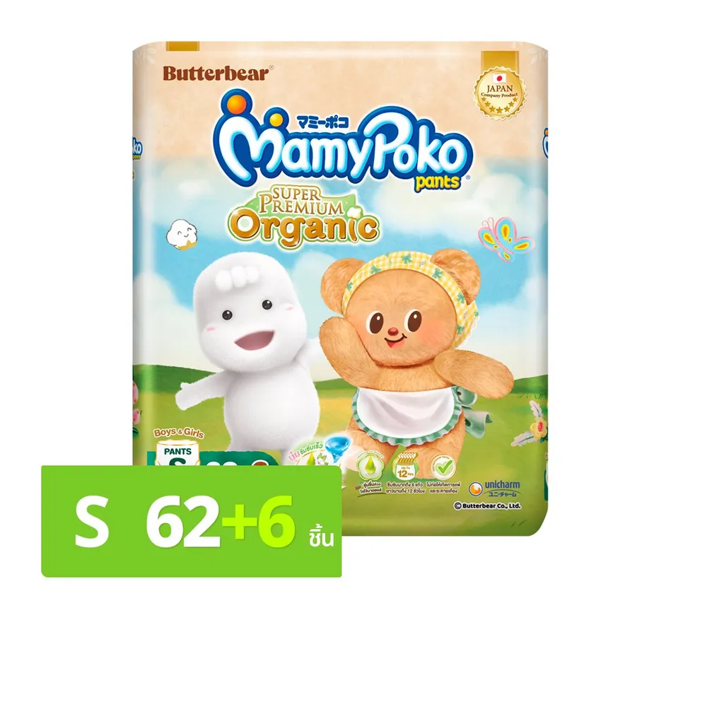 มามี่โพโค แพ้นท์ กางเกงผ้าอ้อม ซุปเปอร์ พรีเมียม ออร์แกนิค ขนาด S 62+6 ชิ้น