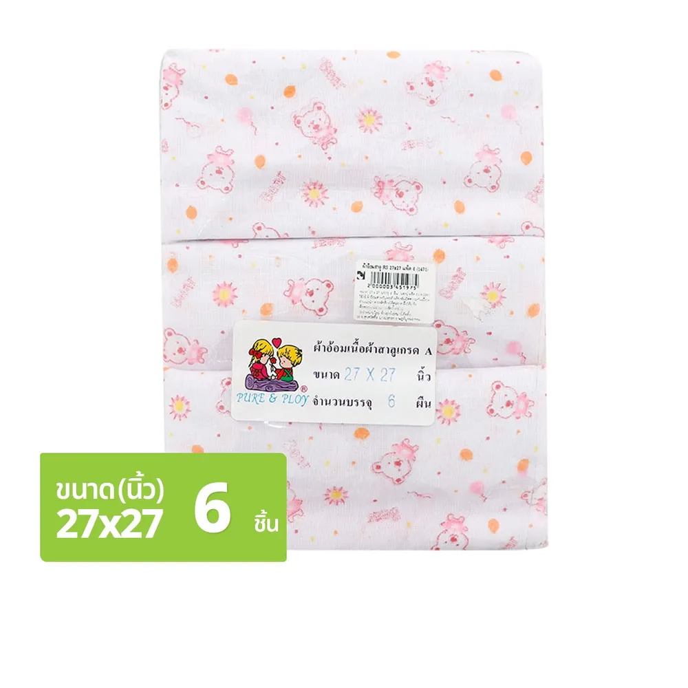 เพียวแอนด์พลอย ผ้าอ้อมสาลู 21 x 21 นิ้ว แพ็ค 6 ผืน