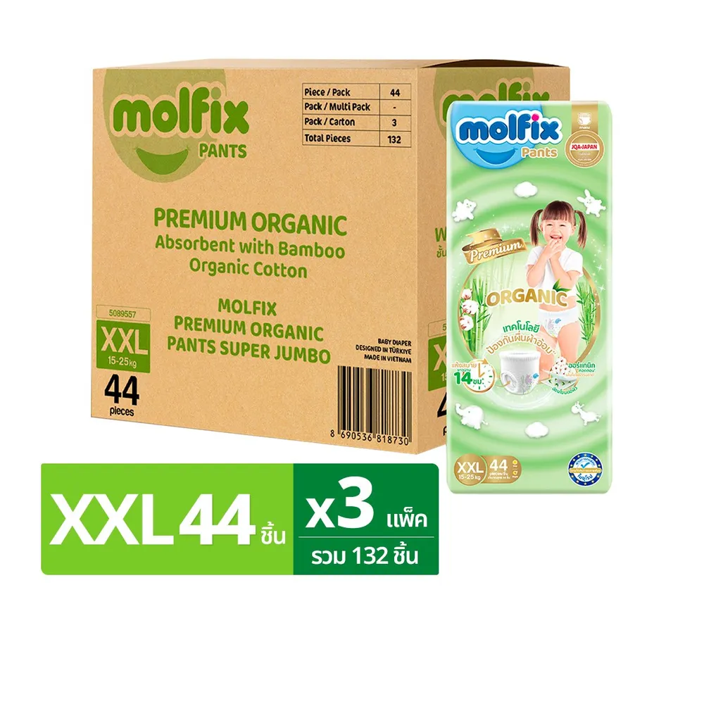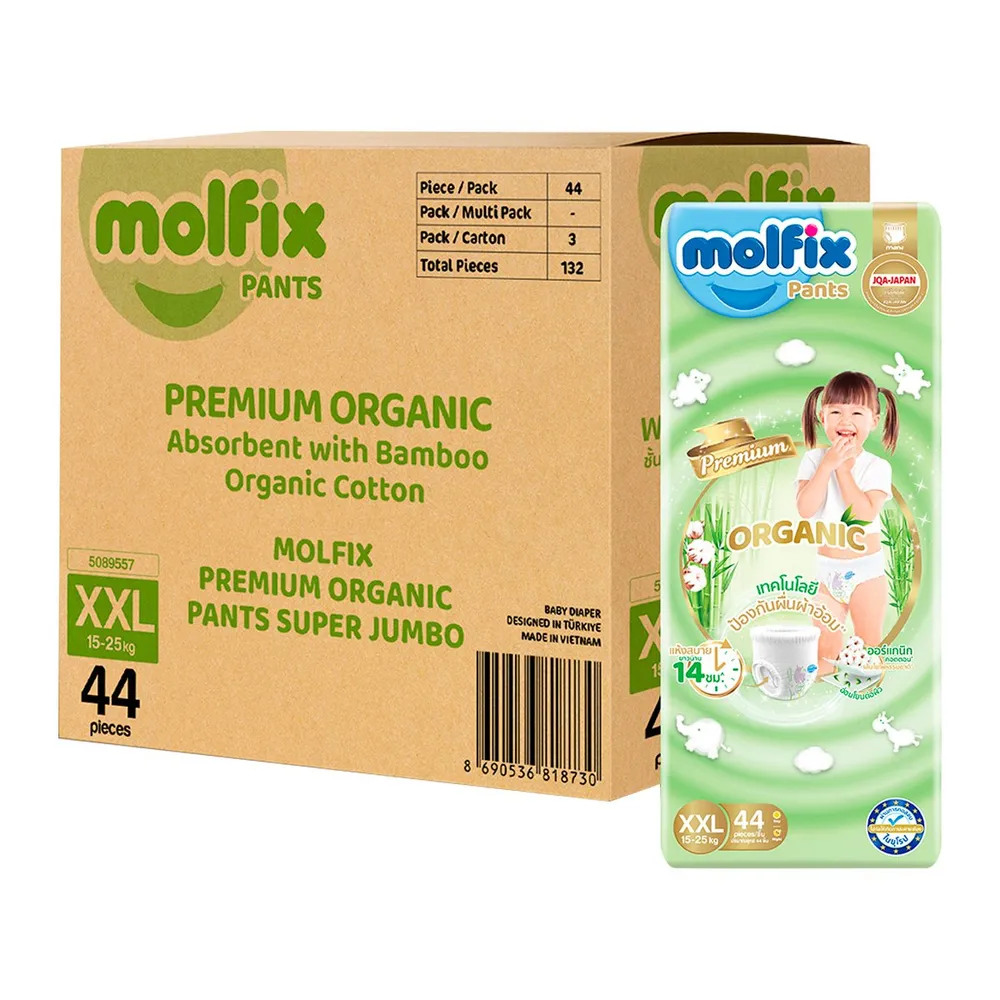 โมลฟิกซ์ เนเชอรัล แพ้นส์ กางเกงผ้าอ้อมเด็ก ขนาด XXL 44 ชิ้น x 3 แพ็ค