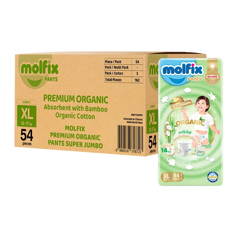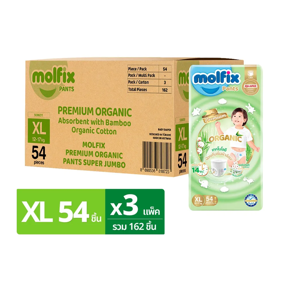 โมลฟิกซ์ เนเชอรัล แพ้นส์ กางเกงผ้าอ้อมเด็ก ขนาด XL 54 ชิ้น x 3 แพ็ค