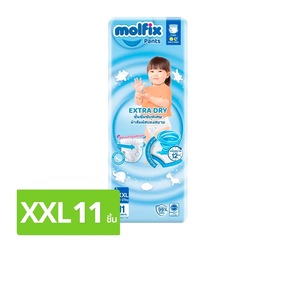 โมลฟิกซ์ เอ็กซ์ตร้าดราย แพ้นส์ กางเกงผ้าอ้อมเด็ก ขนาด XXL 11 ชิ้น