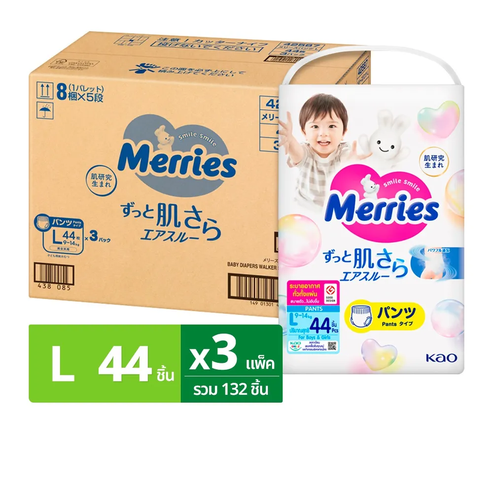 เมอร์รี่ส์ ผ้าอ้อมเด็กชนิดกางเกง ไซส์ L 44 ชิ้น แพ็ค 3