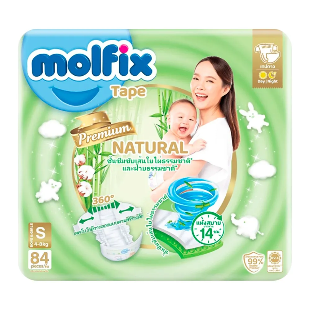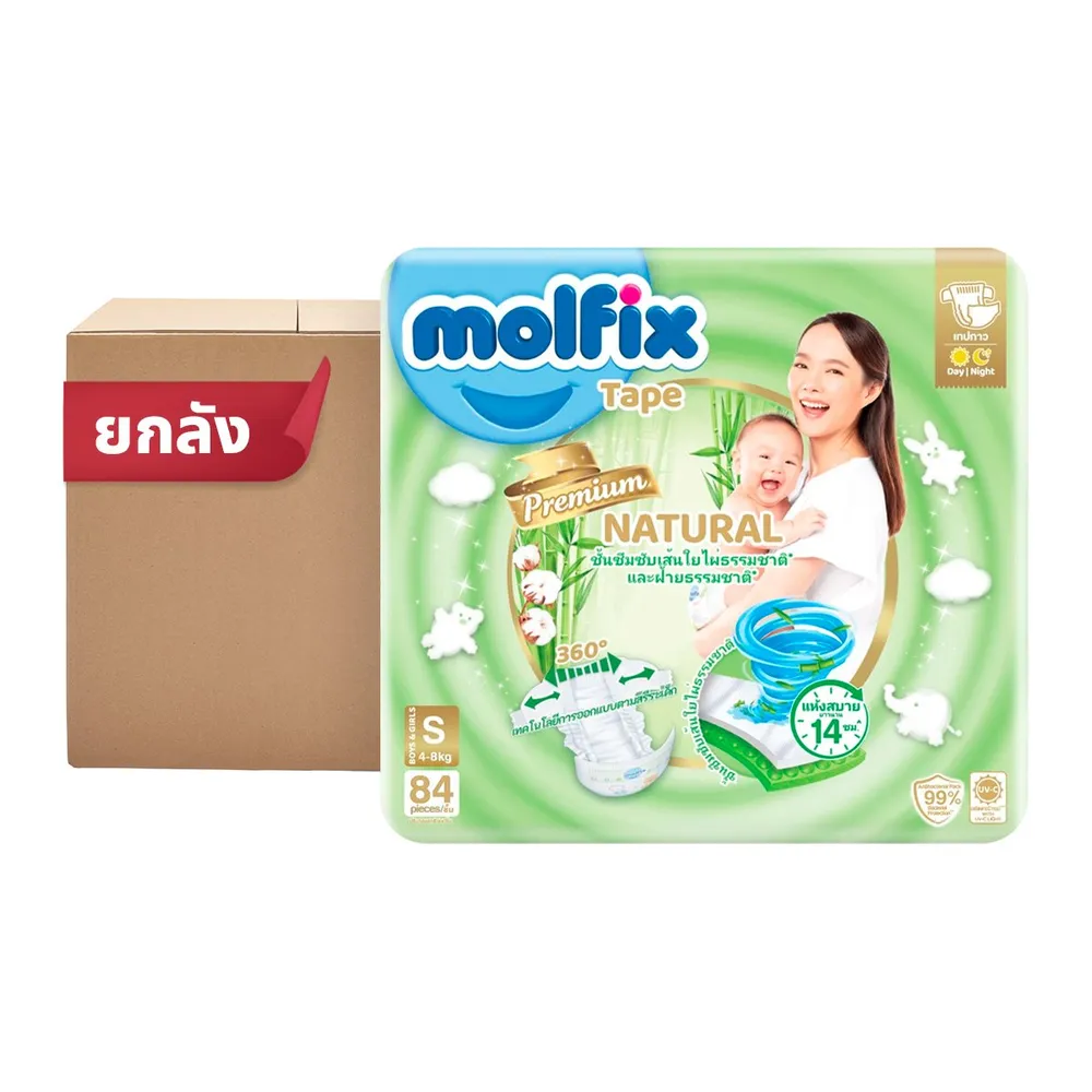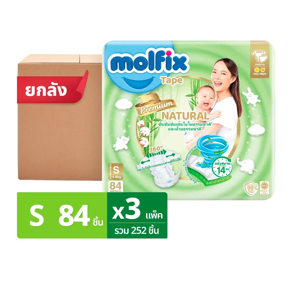 โมลฟิกซ์ เนเชอรัล เทป ผ้าอ้อมเด็กแบบเทป ขนาด S 84 ชิ้น x 3 แพ็ค