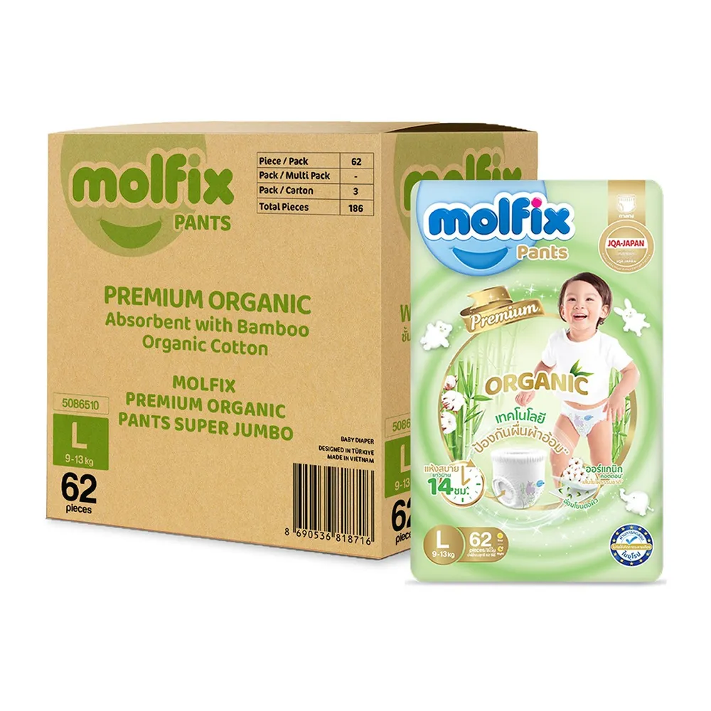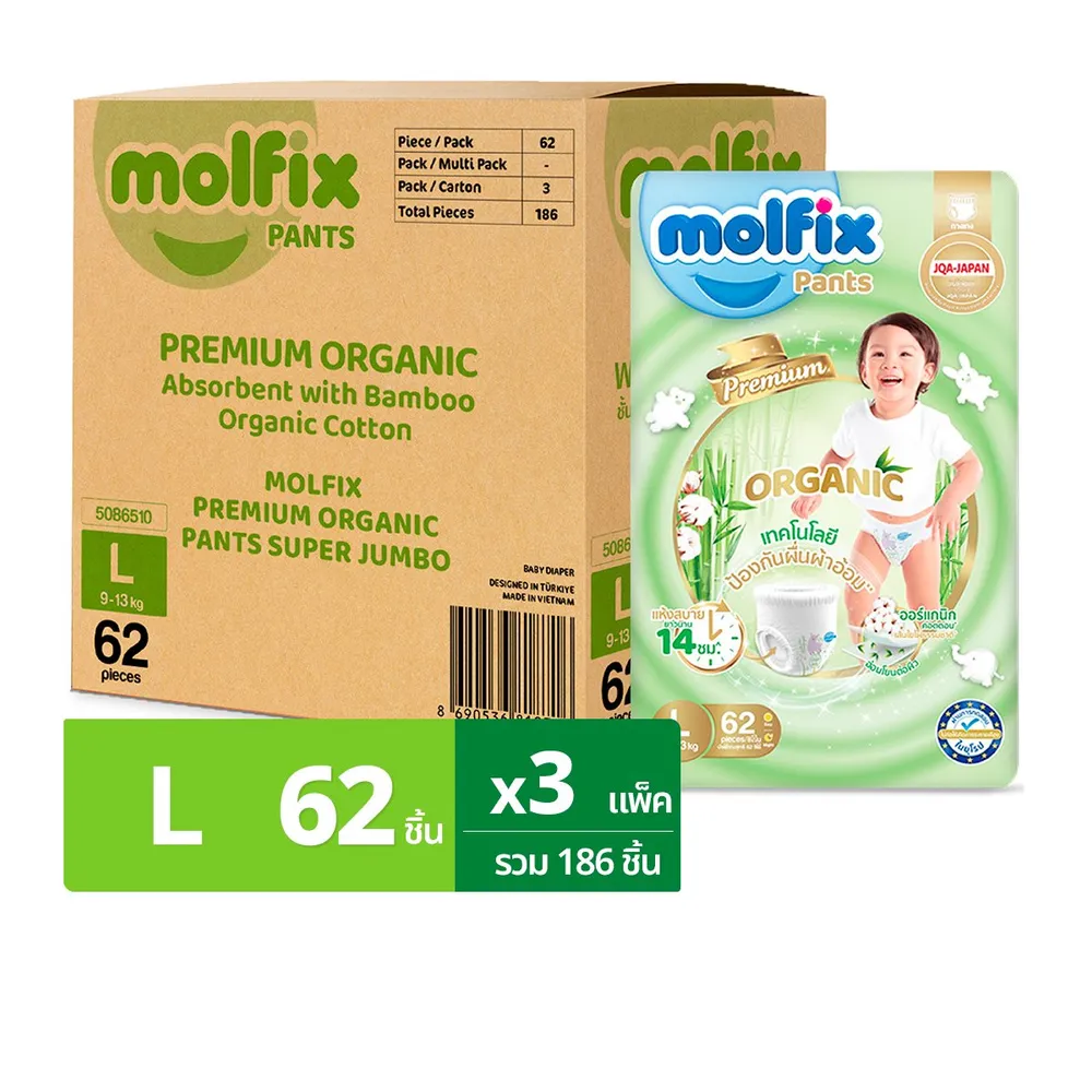 โมลฟิกซ์ เนเชอรัล แพ้นส์ กางเกงผ้าอ้อมเด็ก ขนาด L 62 ชิ้น x 3 แพ็ค