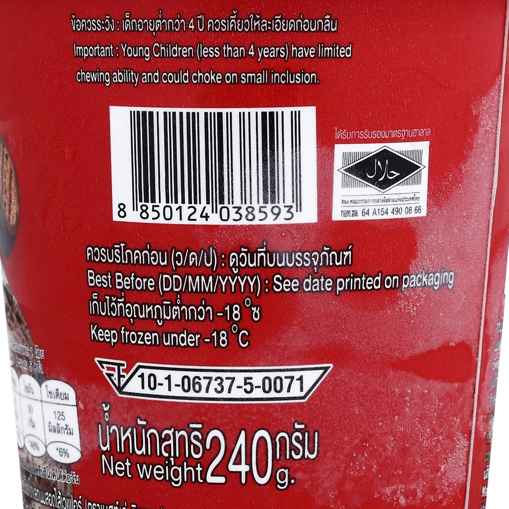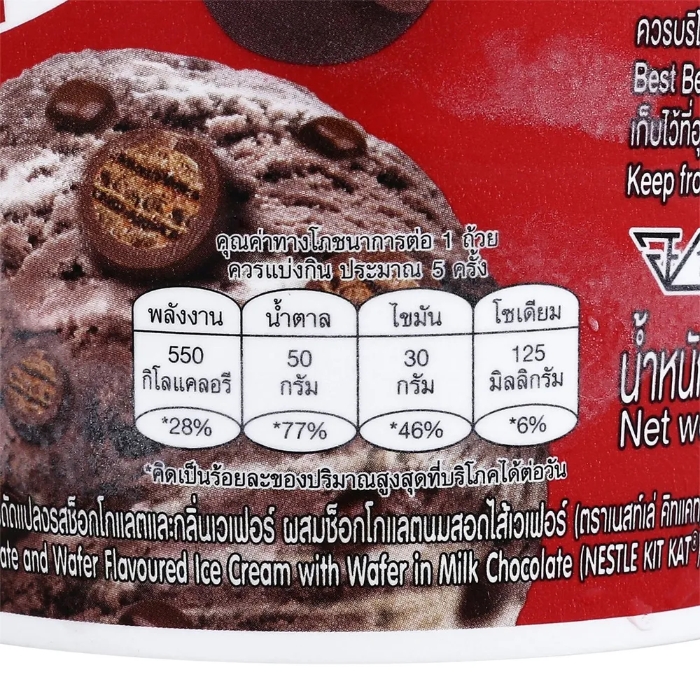 - เนื้อไอศกรีมนุ่มเนียนผสมกับเวเฟอร์กรุบกรอบ<br />
