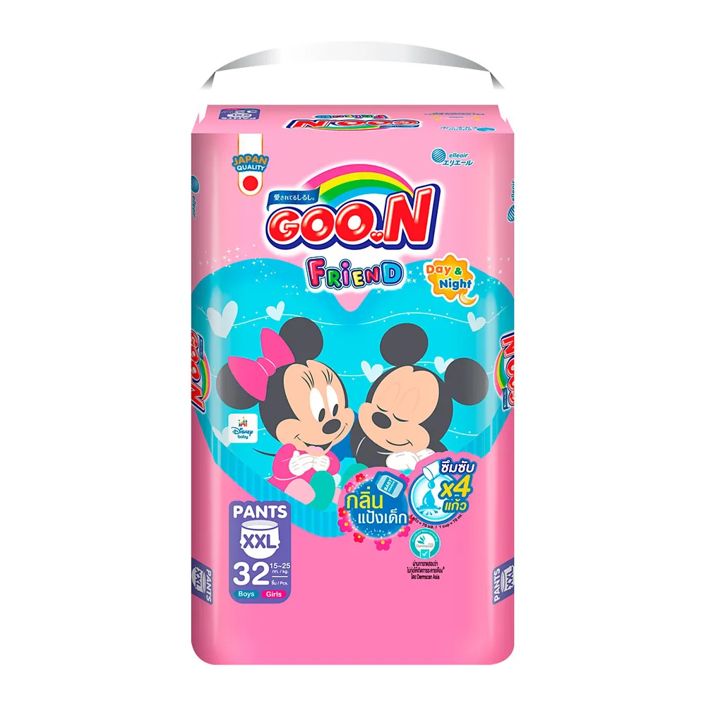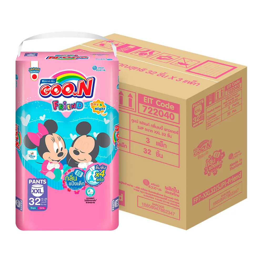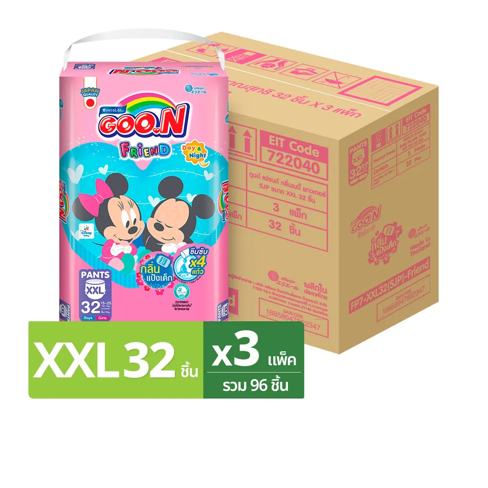 กูนน์ เฟรนด์ ผ้าอ้อมเด็กแบบกางเกง กลิ่นแป้งเด็ก ขนาด XXL 32 ชิ้น แพ็ค 3