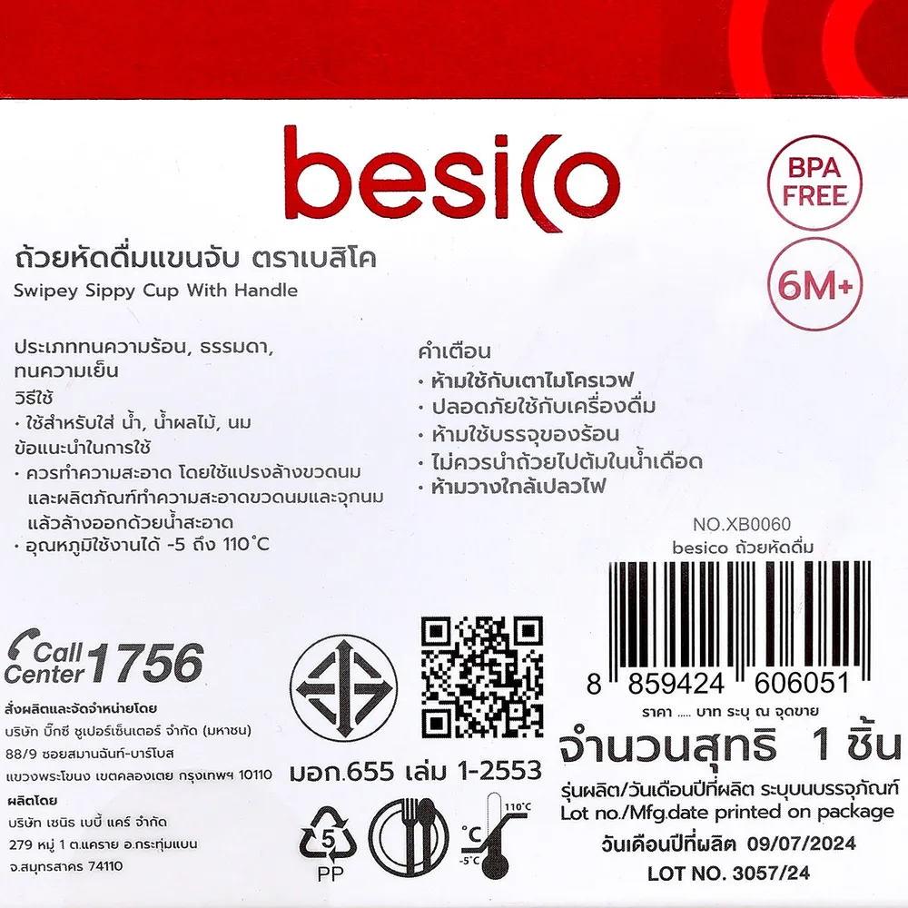 <p>เบสิโค ถ้วยหัดดื่มแขนจับ รุ่น XB0060<br />