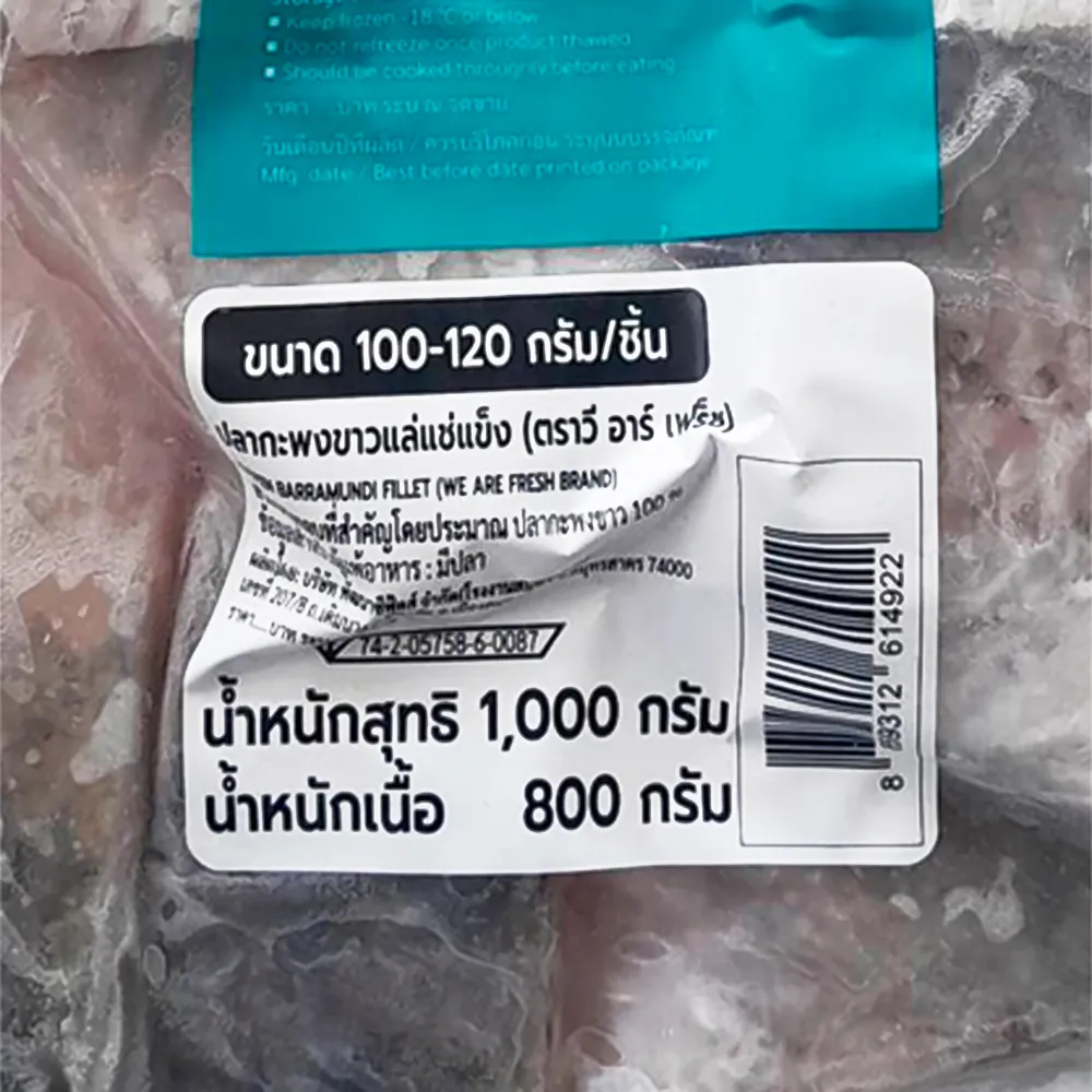 วี อาร์ เฟรช ปลากะพงขาวแล่แช่แข็ง (ขนาด 100 -120 ก./ชิ้น) 800 ก.