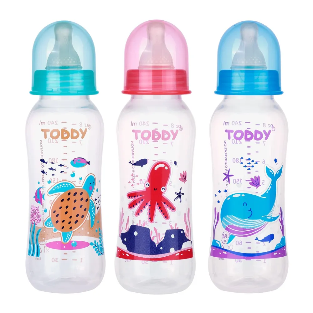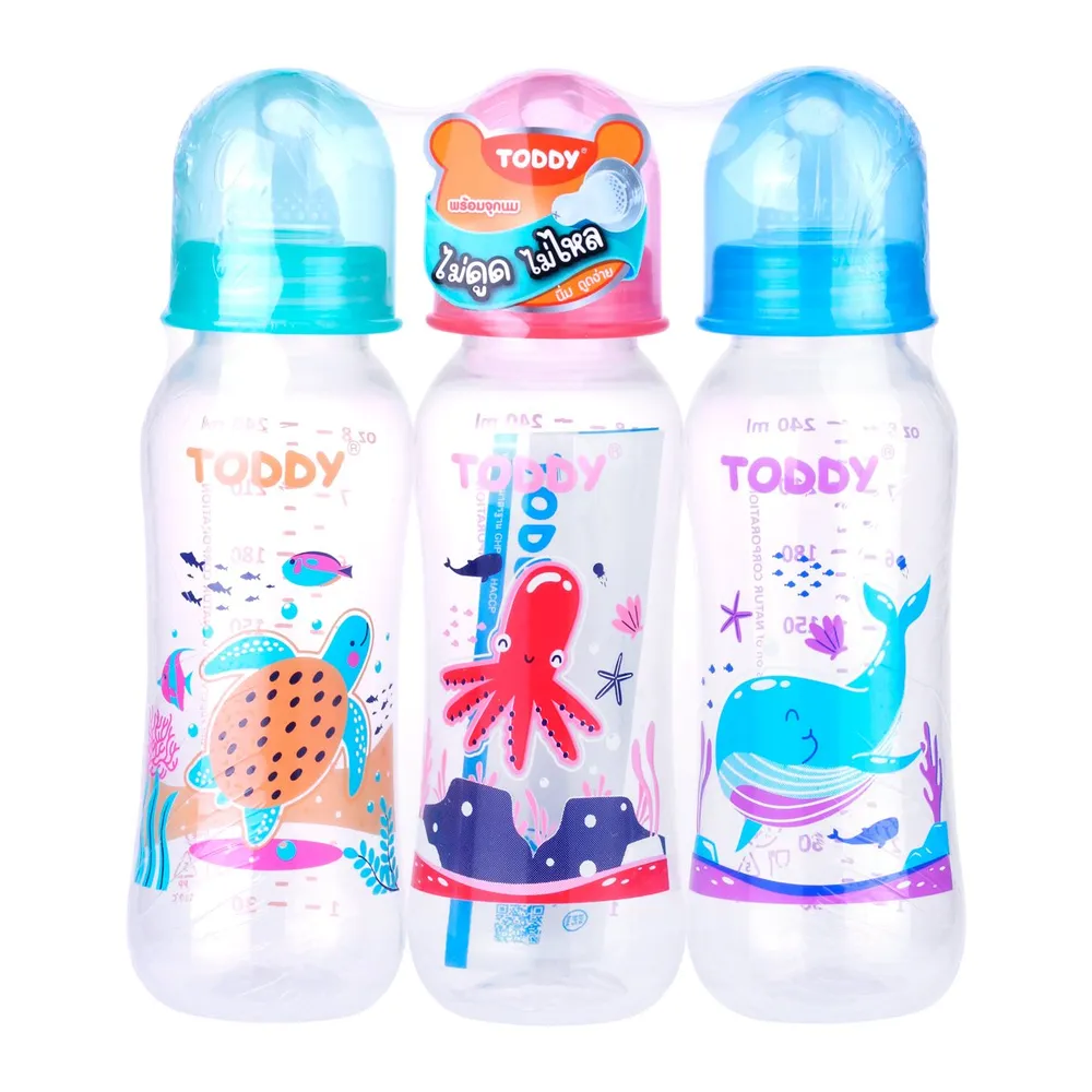 ทอดดี้ ขวดนมทรงถั่วที่ไม่ดูดไม่ไหล 8 ออนซ์ แพ็ค 3 คละลาย