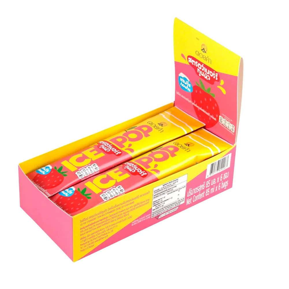 ดอยคำ ไอซ์ป๊อป สตรอว์เบอร์รี่ทูนหัว เครื่องดื่มหวานเย็นสตรอว์เบอร์รี่ 85 มล. แพ็ค 6