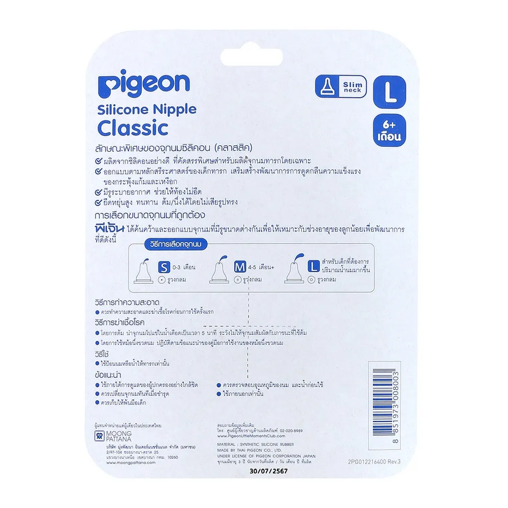 - จุกนมซิลิโคน รุ่นคลาสสิก ขนาด L แพ็ค 6 ชิ้นจากพีเจ้น<br />
