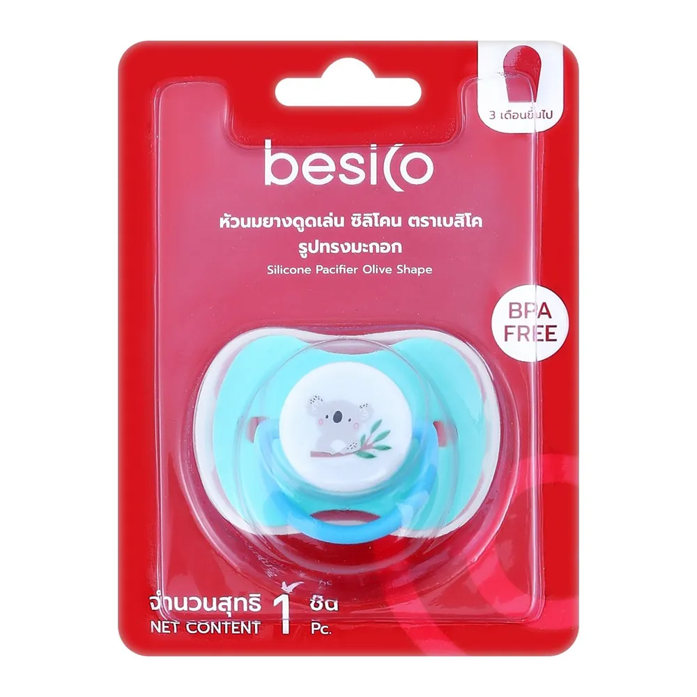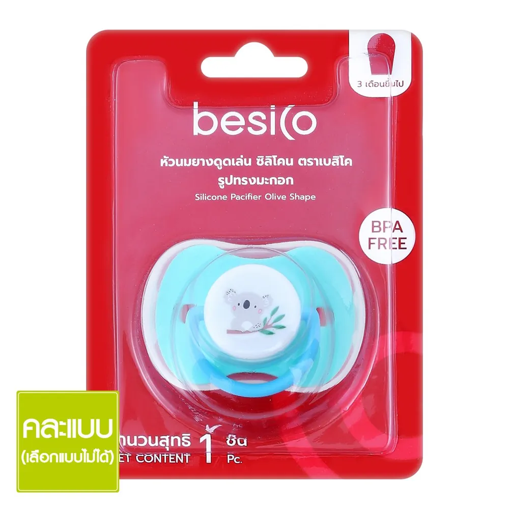 เบสิโค หัวนมยางดูดเล่น ซิลิโคน รูปทรงผลมะกอก สำหรับเด็ก 3M+ รุ่น XB0034