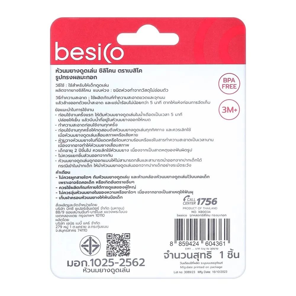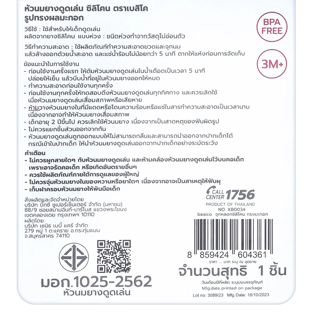 <p>เบสิโค หัวนมยางดูดเล่น ซิลิโคน รูปทรงผลมะกอก สำหรับเด็ก 3M+ รุ่น XB0034<br />