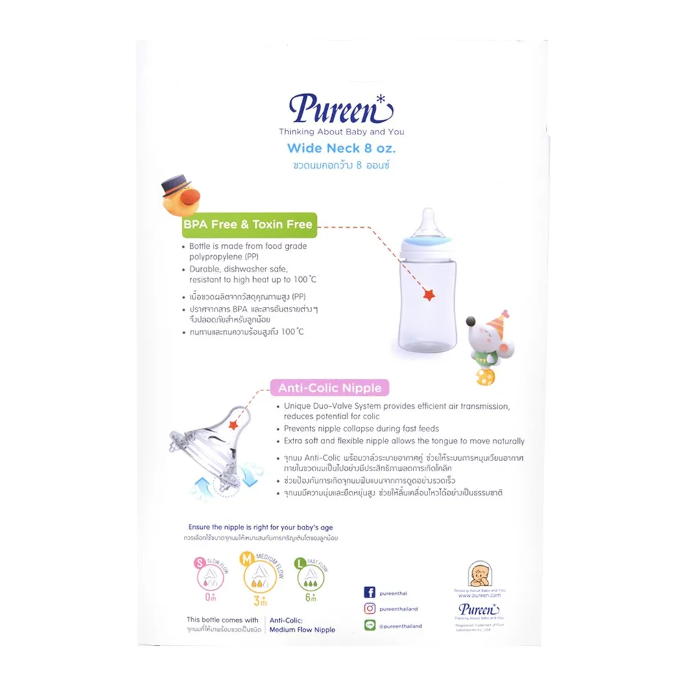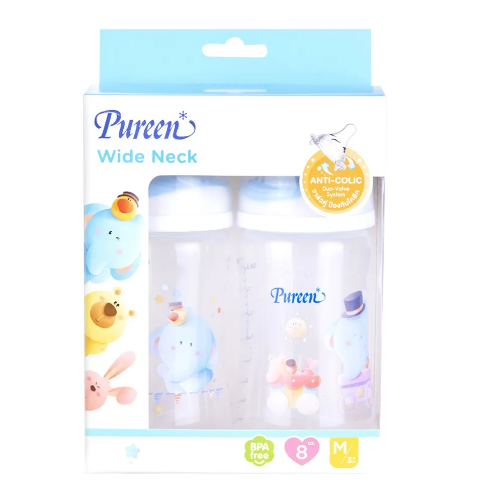 เพียวรีน ขวดนมคอกว้างลายการ์ตูนรูปสัตว์ รุ่น 31BFD035052 ขนาด 8 ออนซ์ แพ็ค 2