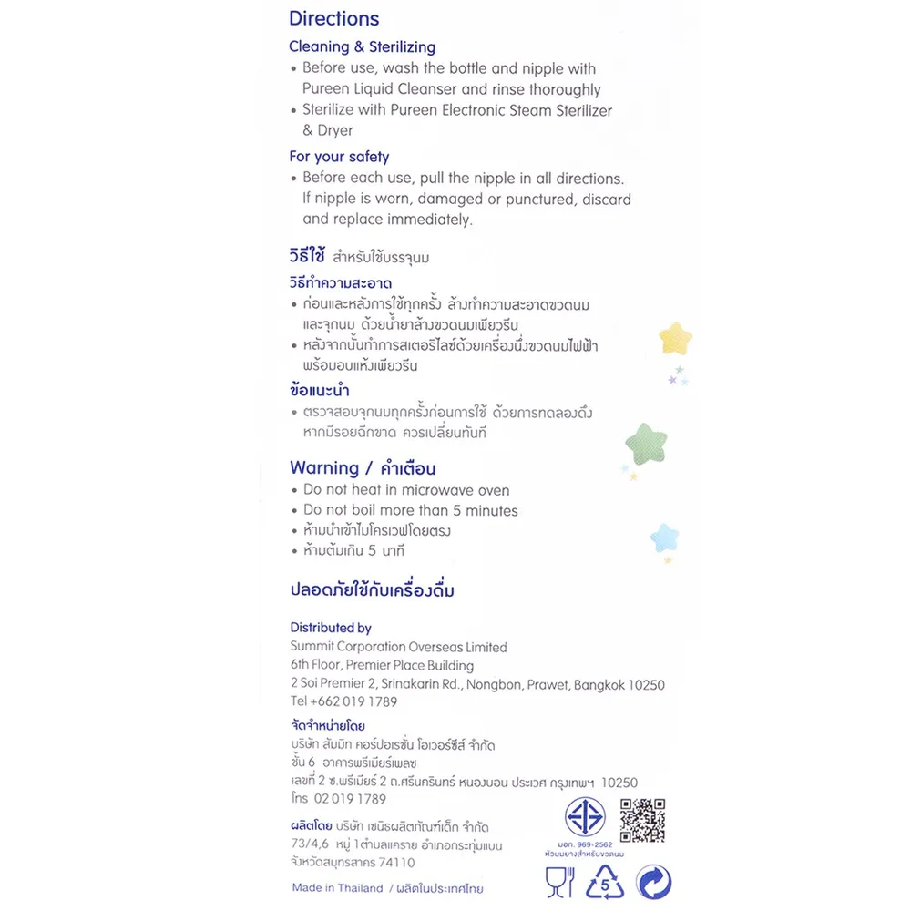 <p>เพียวรีน ขวดนมคอกว้างลายการ์ตูนรูปสัตว์ รุ่น 31BFD035052<br /> <br /> เลือกซื้อผลิตภัณฑ์สำหรับทารกและเด็กหลากหลายแบรนด์ดังคุณภาพพรีเมียม ที่พร้อมช่วยเสริมสร้างพัฒนาและช่วยให้การเลี้ยงดูหรือดูแลเด็ก ๆ นั้นสะดวกสบายแถมง่ายมากยิ่งขึ้น โดยทุกชิ้นผ่านการออกแบบดีไซน์มาเพื่อเด็กโดยเฉพาะ<br /> <br /> - สำหรับเด็กทารกอายุตั้ง 3-6 เดือน<br /> - เพียวรีน ขวดนมคอกว้าง รุ่น 31BFD035052<br /> - ขวดนมผลิตจากวัสดุ PP<br /> - ดีไซน์ขวดโค้งมนถือกระชับจับถนัดมือ<br /> - จุกนมหลายรู ขนาด M<br /> - ลดอาการโคลิค<br /> - วาวล์คู่<br /> - ป้องกันจุกฟีบ<br /> - ปราศจากสารเคมีประเภทโพลีคาร์บอเนตและ BPS<br /> - ทนความร้อนได้สูงถึง 100&deg;C<br /> - ห้ามนำเข้าไมโครเวฟและห้ามต้มเกิน 5 นาที<br /> <br /> <strong>เลขที่ มอก.</strong><br /> มอก.969-2533<br /> <br /><span style="color: #ff0000;">*บริษัทฯ ขอสงวนสิทธิ์ในการปรับเปลี่ยนราคาจำหน่ายและโปรโมชั่น รวมถึงแพ็คเกจและปริมาณสินค้าจากผู้ผลิตได้ตามความเหมาะสม โดยไม่จำเป็นต้องแจ้งให้ทราบล่วงหน้า</span><br /><br /> *ภาพประกอบใช้เพื่อการโฆษณาเท่านั้น</p>