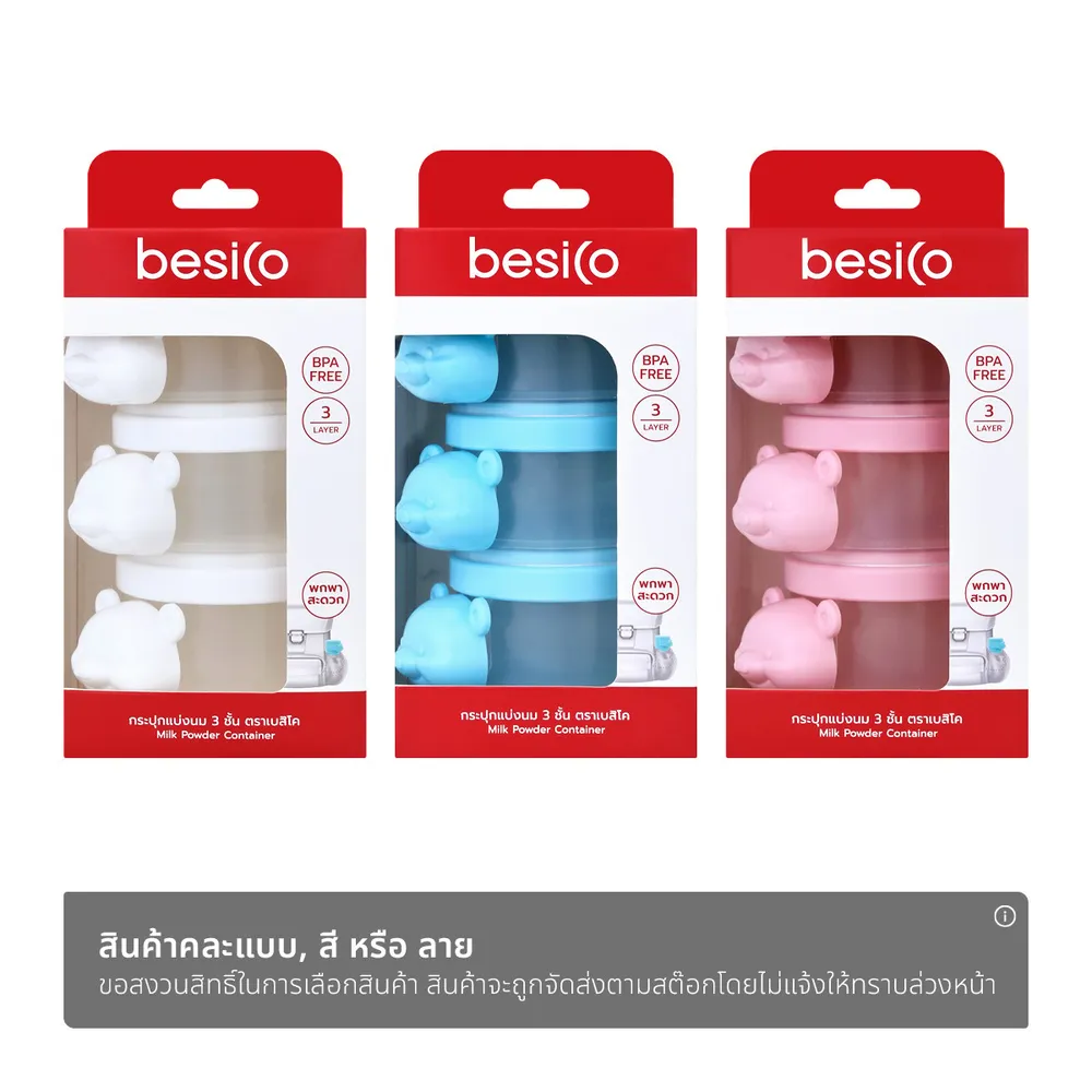 <p>เบสิโค กระปุกแบ่งนม 3 ชั้น คละสี<br /><br />สินค้าจากแบรนด์ เบสิโค ที่มาพร้อมดีไซน์สวยงามและทันสมัย สีสันสวยงาม ผลิตจากวัสดุที่มีคุณภาพ แข็งแรง ทนทาน ฟังก์ชันการใช้งานตอบโจทย์ไลฟ์สไตล์ได้อย่างลงตัว<br /><br />- ผลิตจากวัสดุที่มีคุณภาพ<br />- ผ่านกระบวนการการผลิตที่ได้มาตรฐาน<br /><br /><br />*ภาพประกอบใช้เพื่อการโฆษณาเท่านั้น</p>