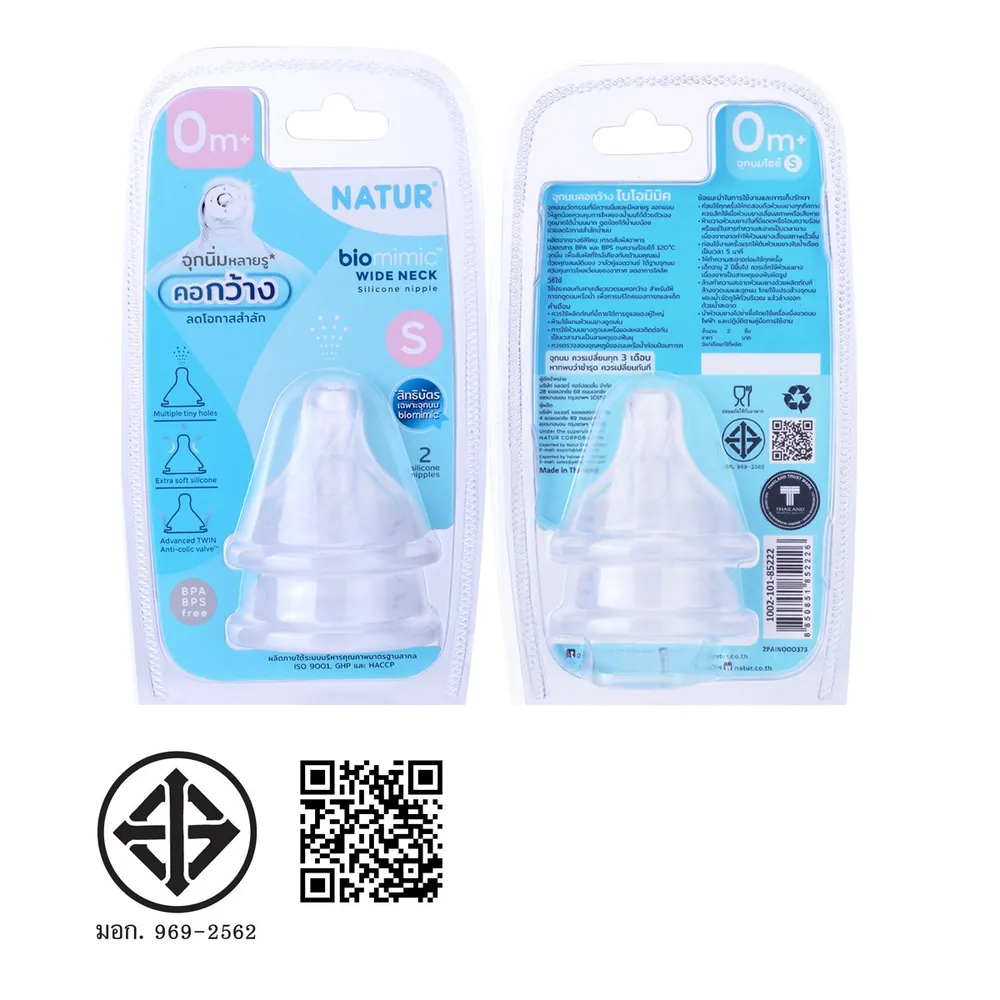 เนเจอร์ จุกนมคอกว้าง ไบโอมิมิค ไซซ์ S แพ็ค 2