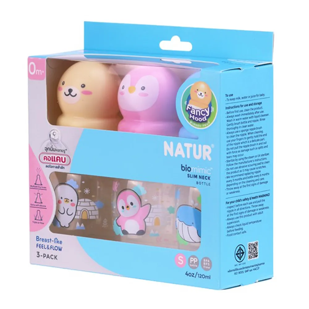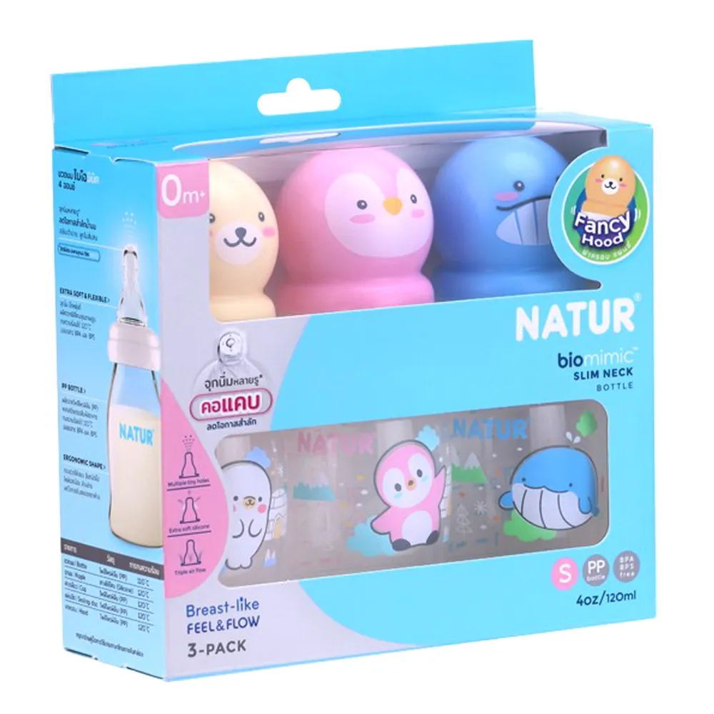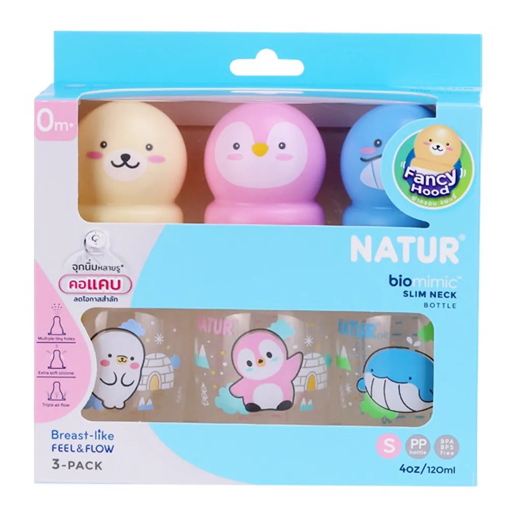 เนเจอร์ ขวดนมคอแคบ ไบโอมิมิค 4 ออนซ์ แพ็ค 3 คละลาย