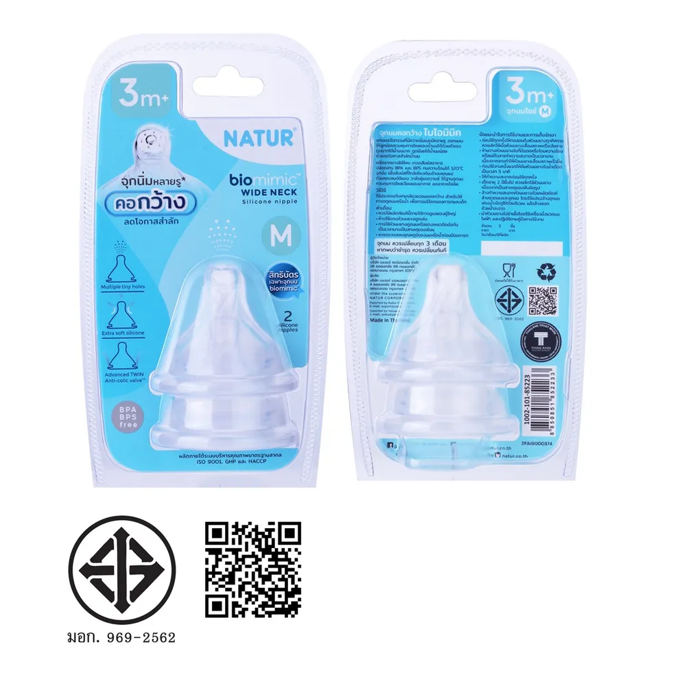 เนเจอร์ จุกนมคอกว้าง ไบโอมิมิค ไซซ์ M แพ็ค 2