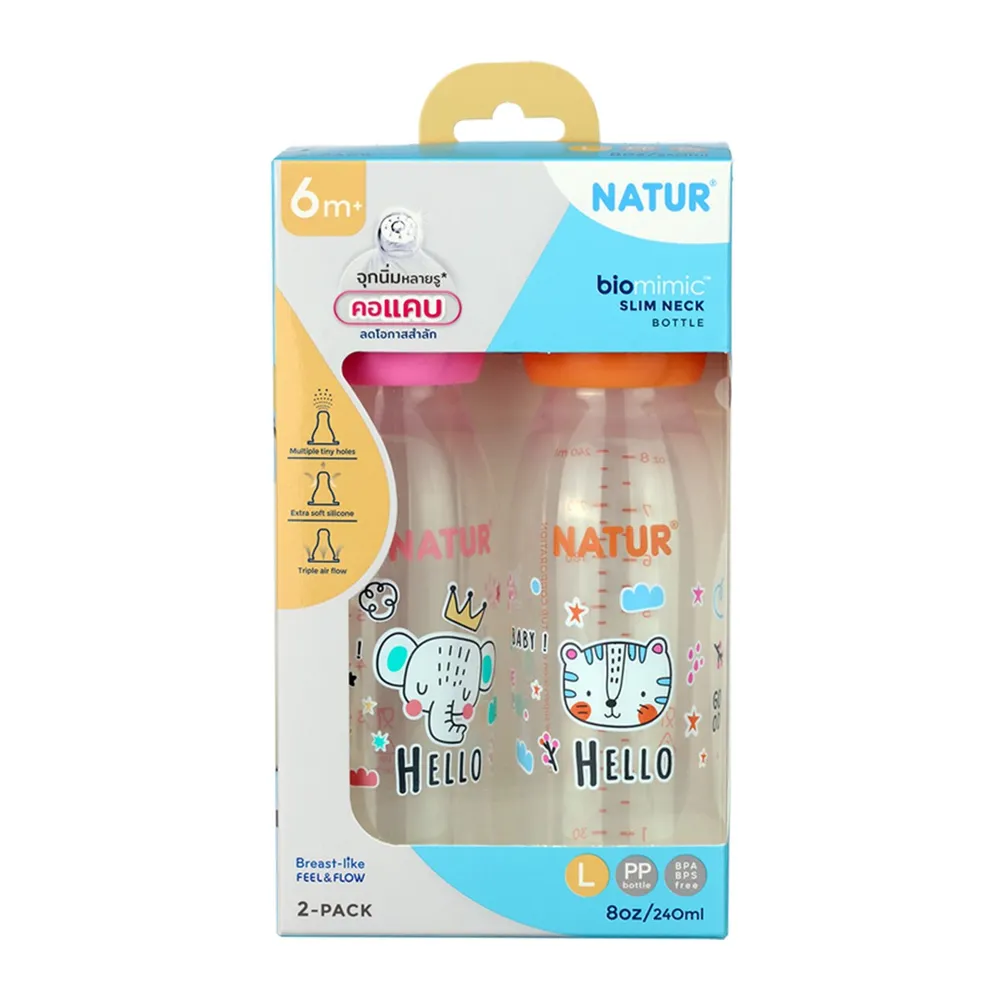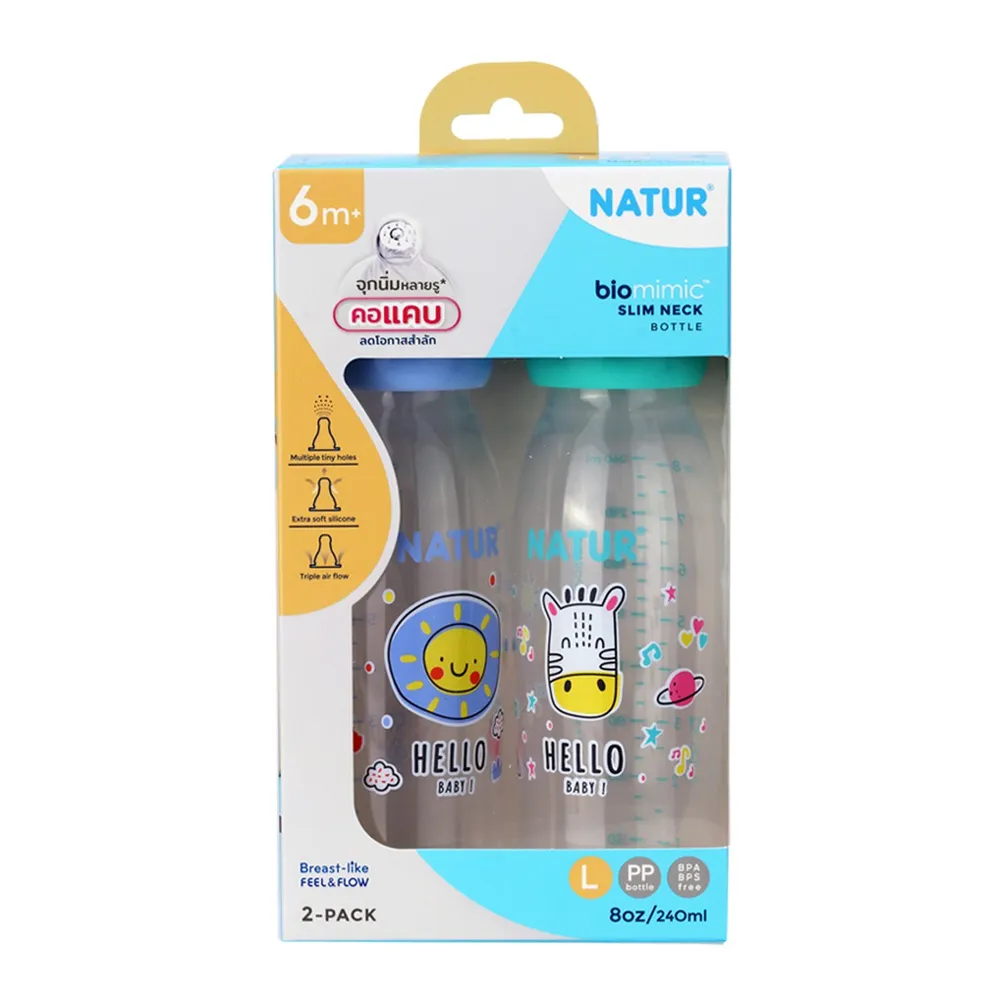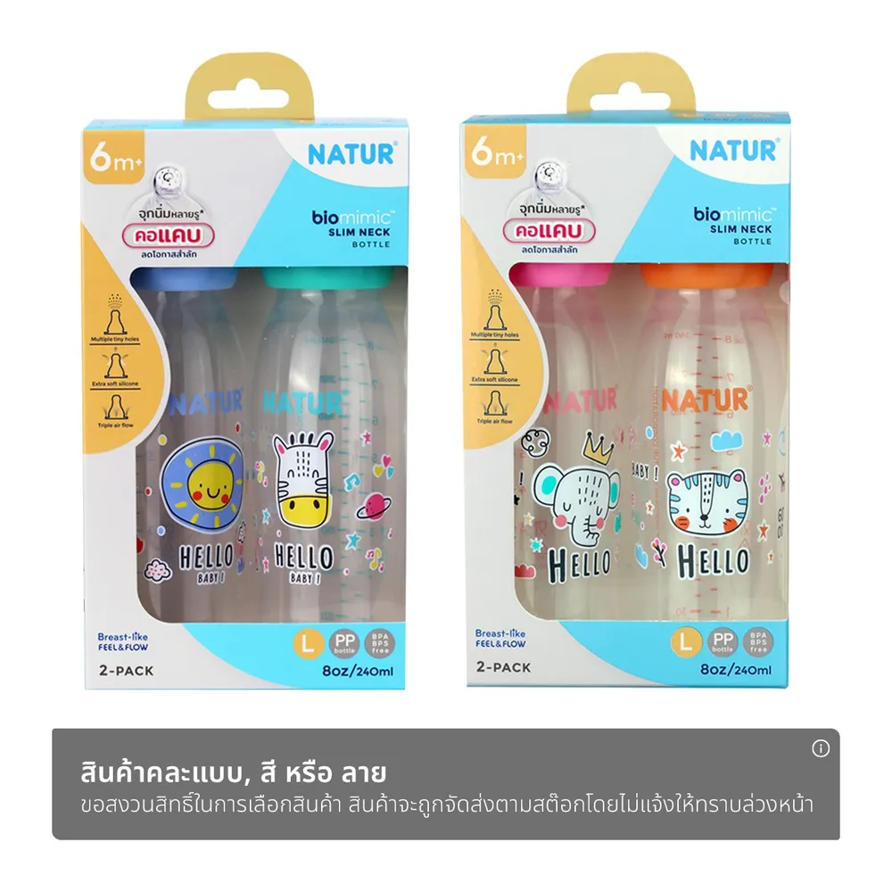 เนเจอร์ ขวดนมคอแคบ ไบโอมิมิค 8 ออนซ์ แพ็ค 2 คละลาย
