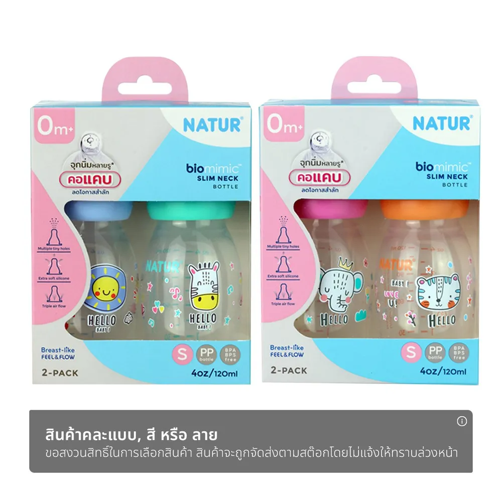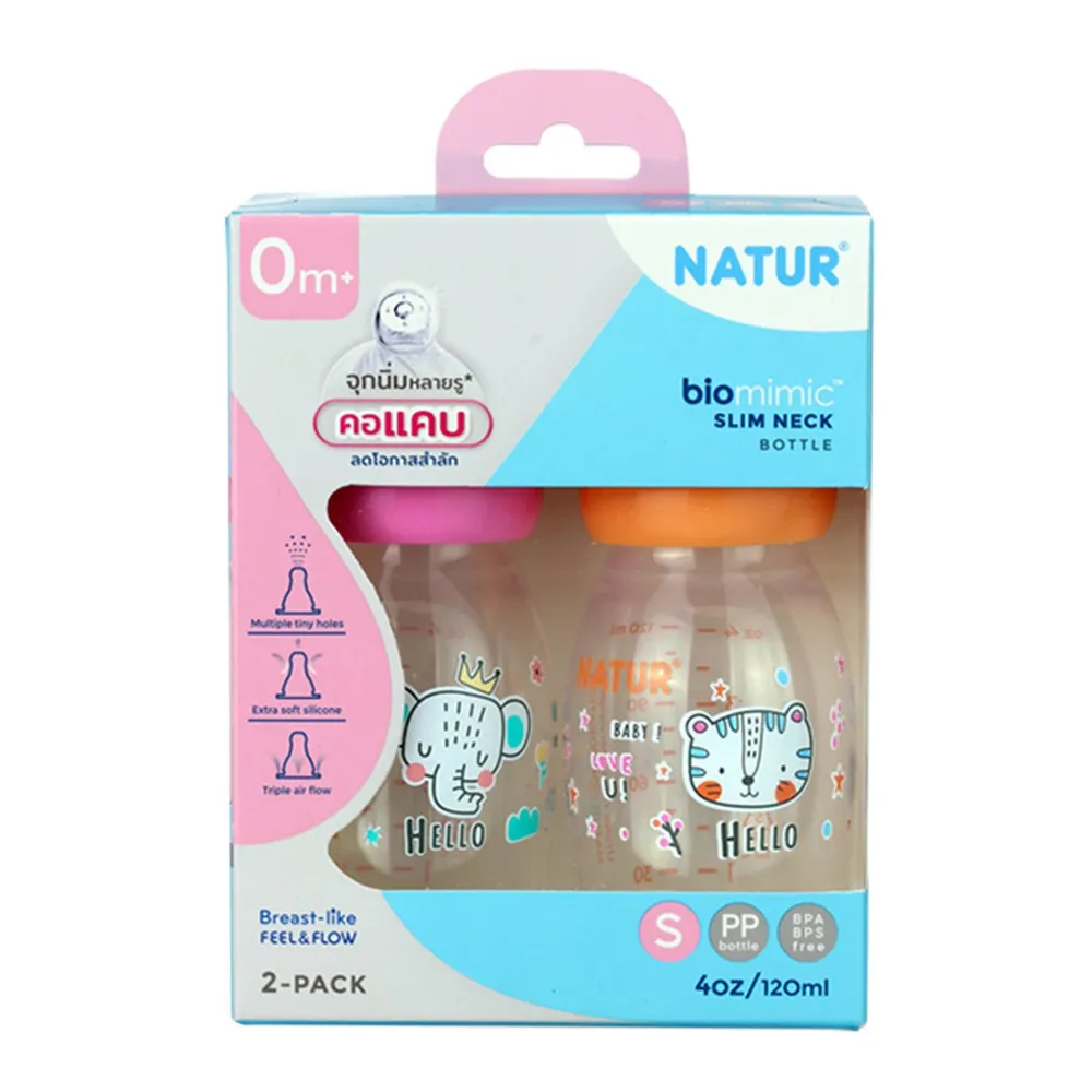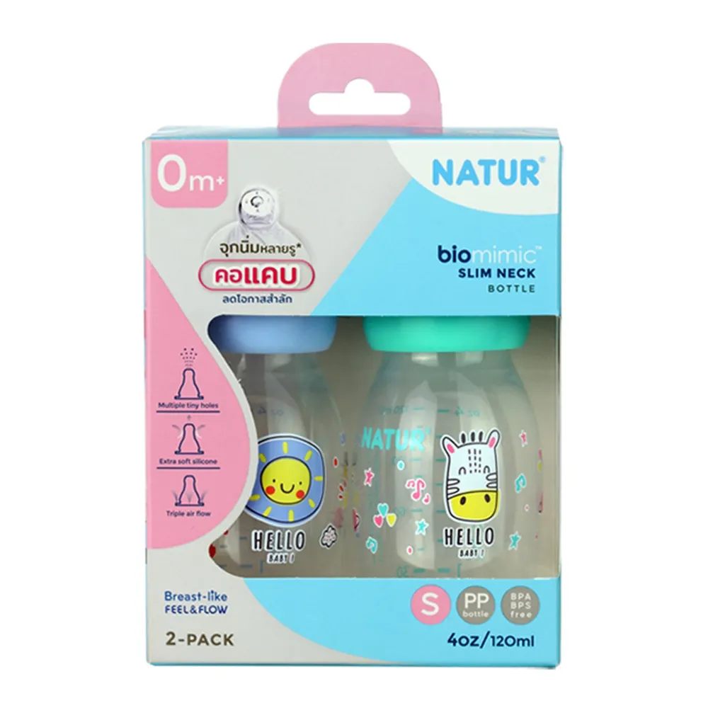 เนเจอร์ ขวดนมคอแคบ ไบโอมิมิค 4 ออนซ์ แพ็ค 2 คละลาย