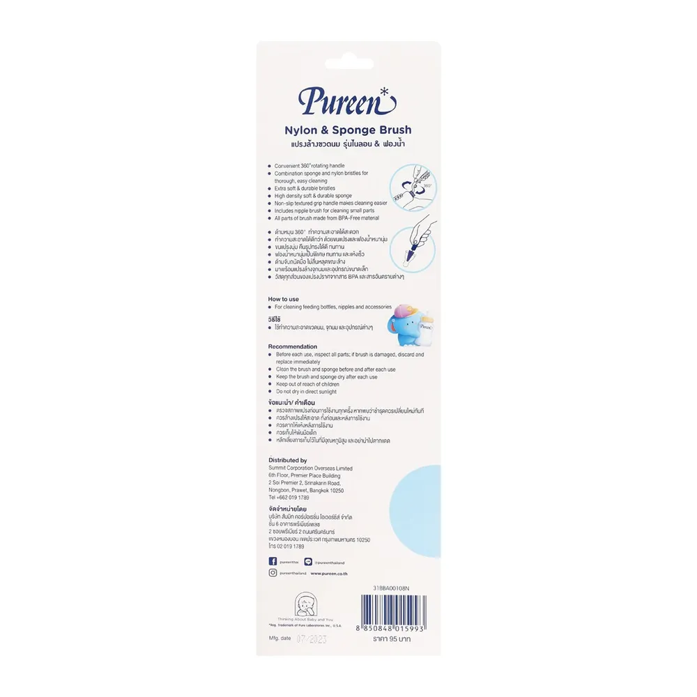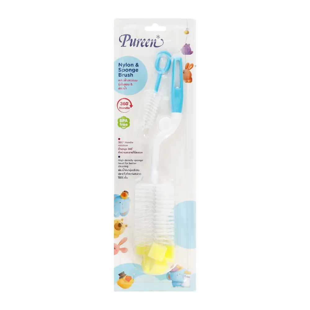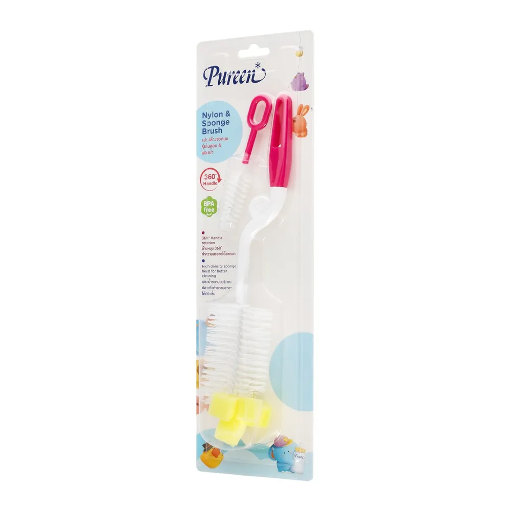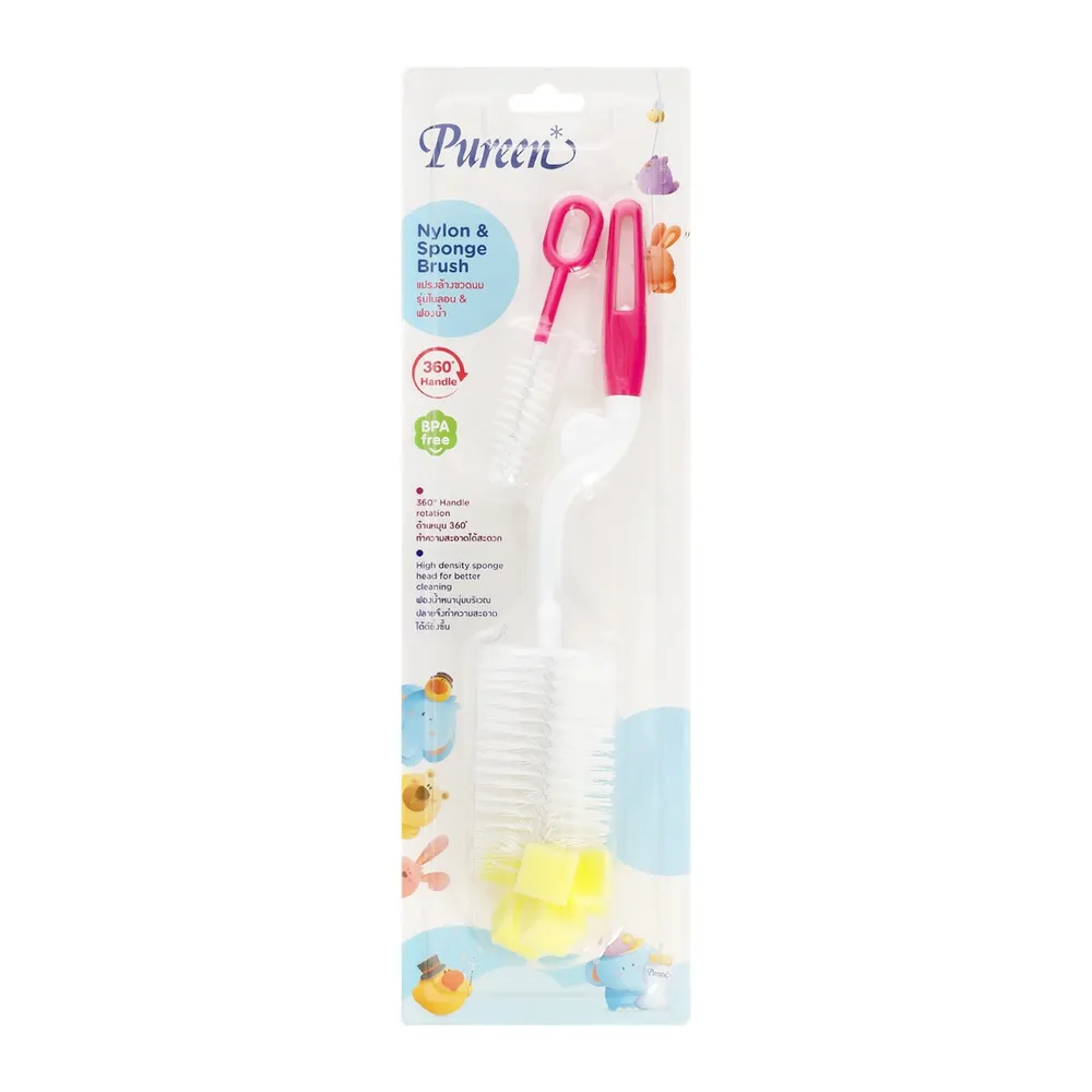 เพียวรีน แปรงล้างขวดนม รุ่นไนลอน & ฟองน้ำ คละสี