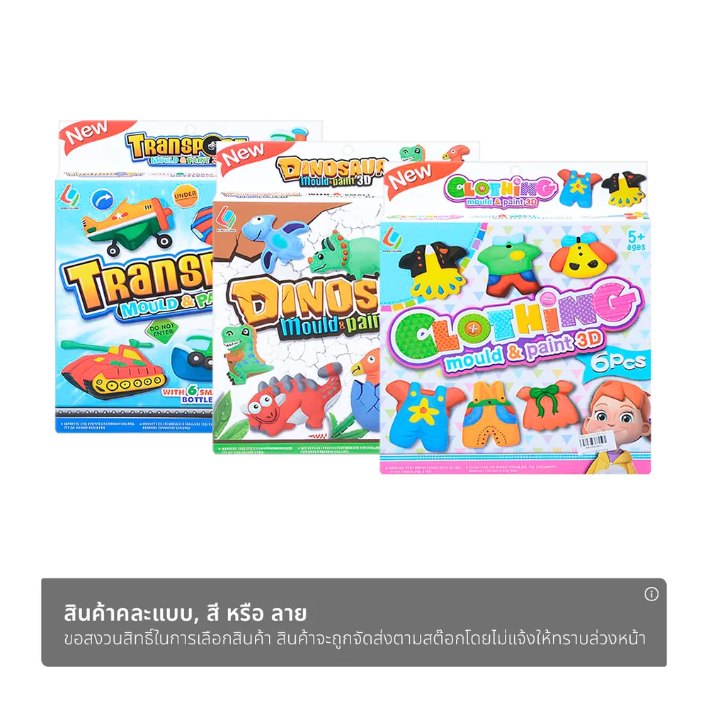 ของเล่นระบายสี DIY ประกอบด้วยชุดสีสำหรับระบาย และแม่พิมพ์สำหรับปูนปลาสเตอร์ในการหล่อเป็นรูปทรง เสริมสร้างจินตนาการ ฝึกความอดทน ให้ความเพลิดเพลิน ควรเล่นด้วยความระมัดระวัง และล้างมือให้สะอาดทุกครั้งหลังเลิกเล่น<br />