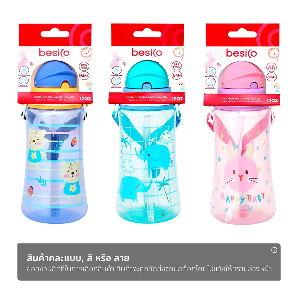 เบสิโค กระติกน้ำพร้อมสายสะพาย รุ่น XB0059 ขนาด 12 ออนซ์ คละแบบ