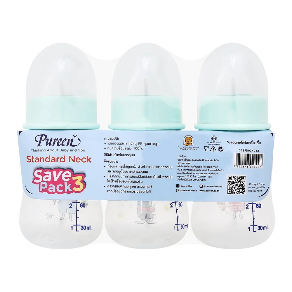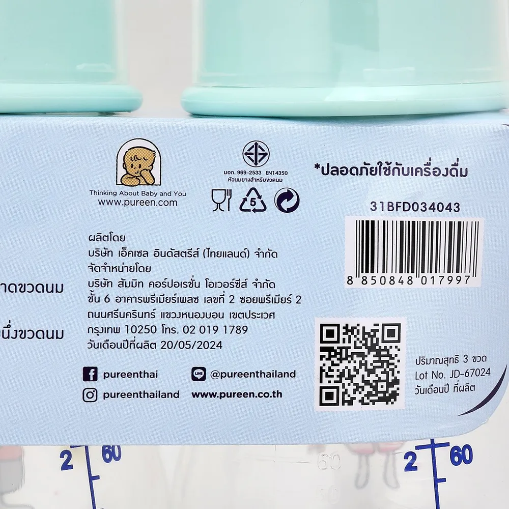 เพียวรีน ขวดนมทรงโค้ง รุ่น 31BFD034043 ขนาด 4 ออนซ์ แพ็ค 3