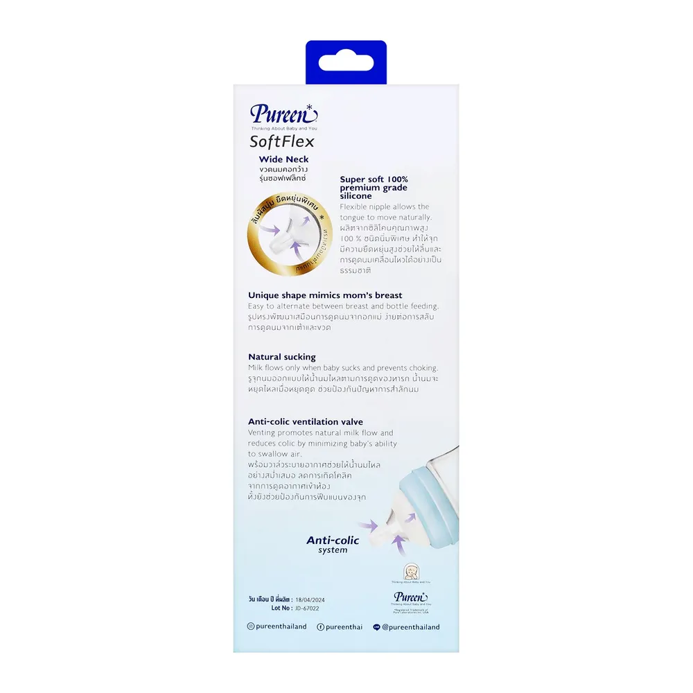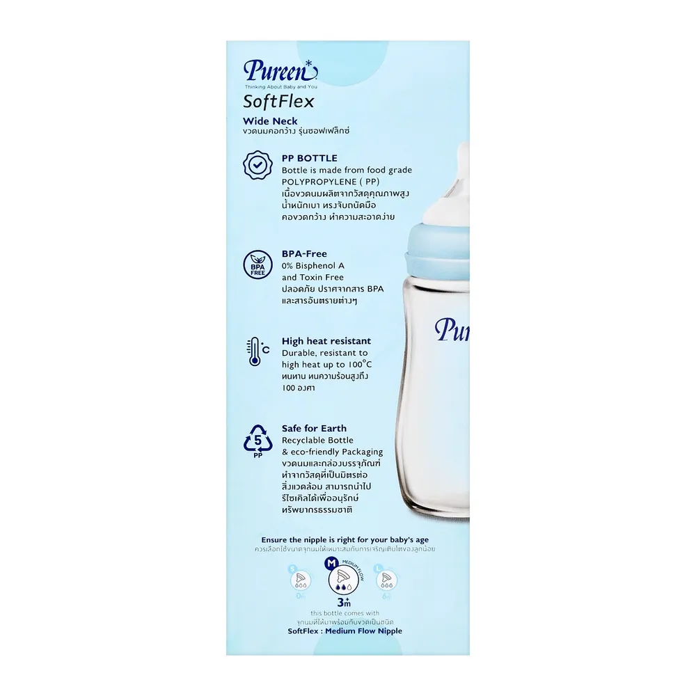 เพียวรีน ขวดนมคอกว้าง PP รุ่น ซอฟท์เฟล็กซ์ 31BFD036020 ขนาด 240 มล.