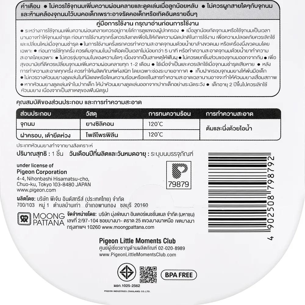 - จุกนม, ฝาครอบ, เต้ายึดห่วง มีการทนความร้อนได้ถึง 120&deg;C<br />