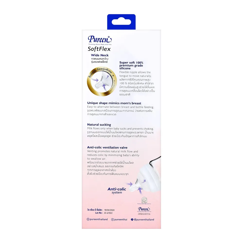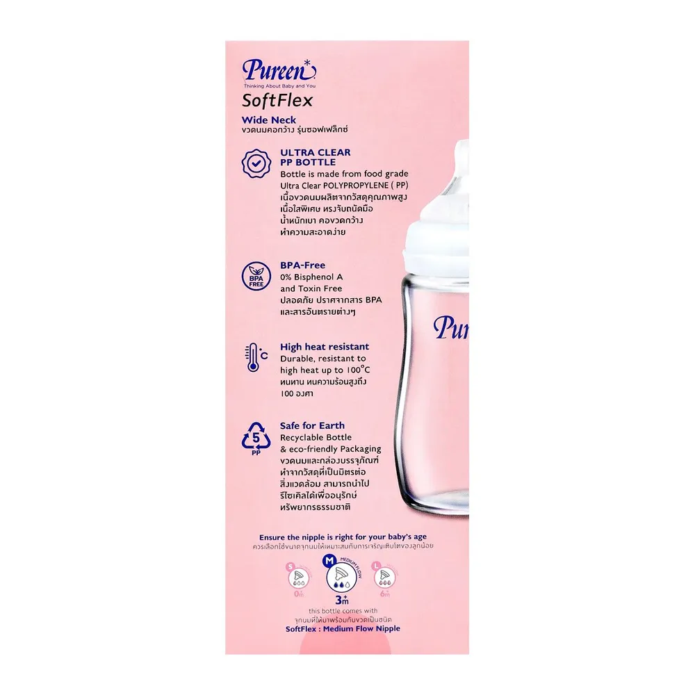 เพียวรีน อัลตร้า คลีน PP ขวดนมคอกว้าง รุ่น ซอฟท์เฟล็กซ์ 31BFD036040 ขนาด 240 มล.
