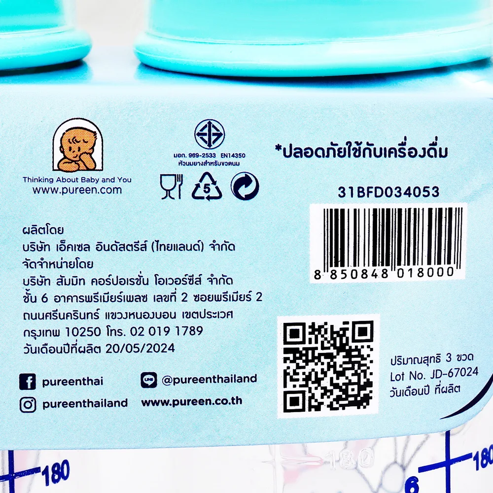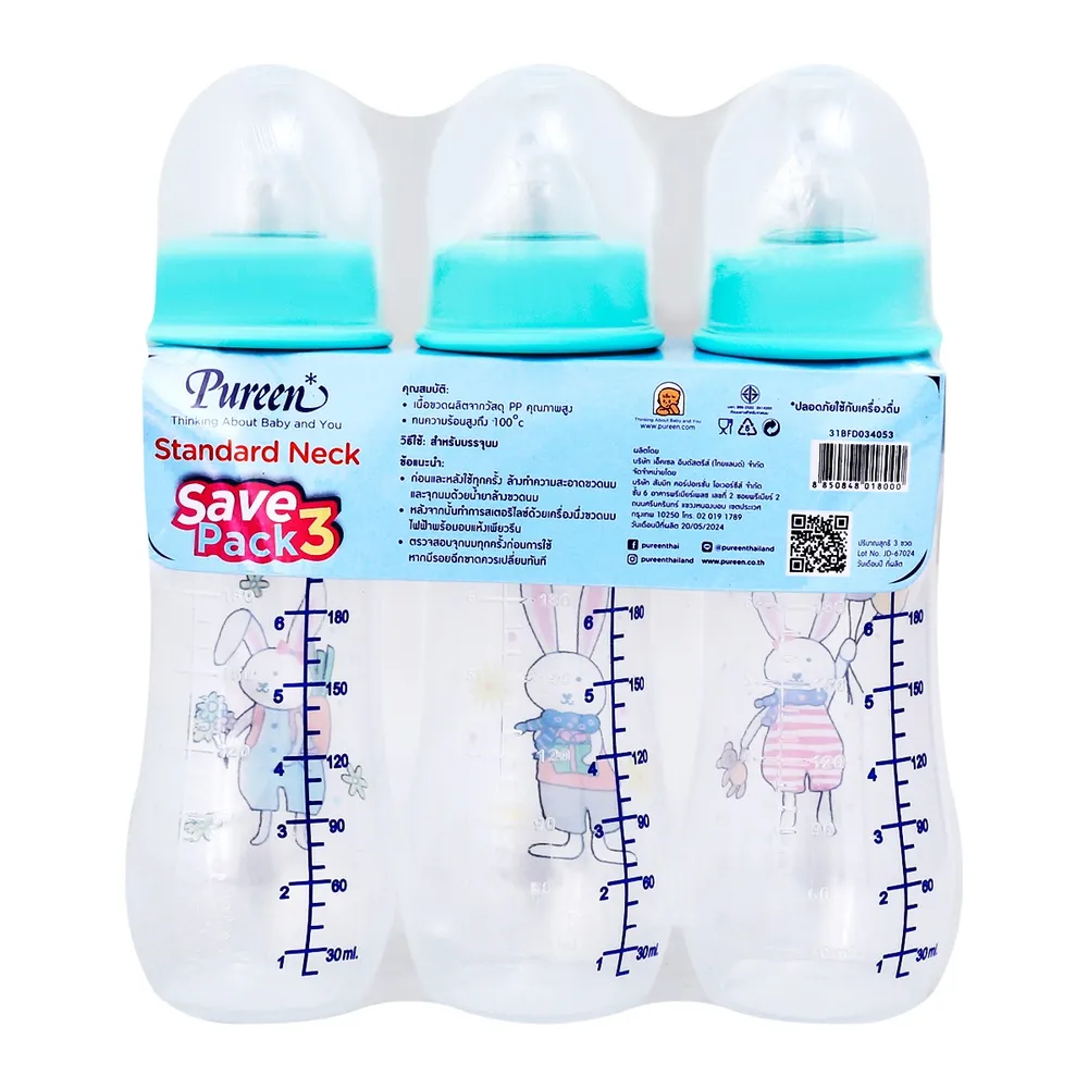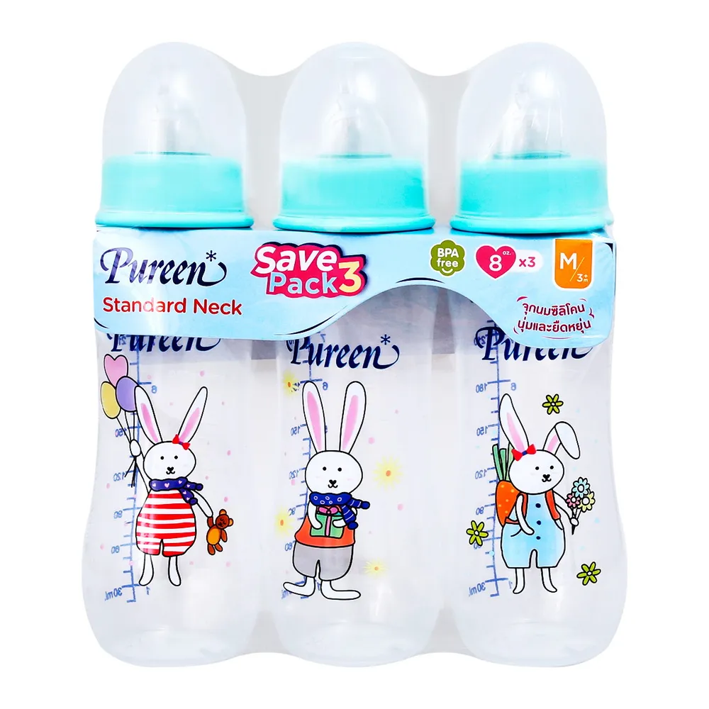 เพียวรีน ขวดนมทรงโค้ง รุ่น 31BFD034053 ขนาด 8 ออนซ์ แพ็ค 3