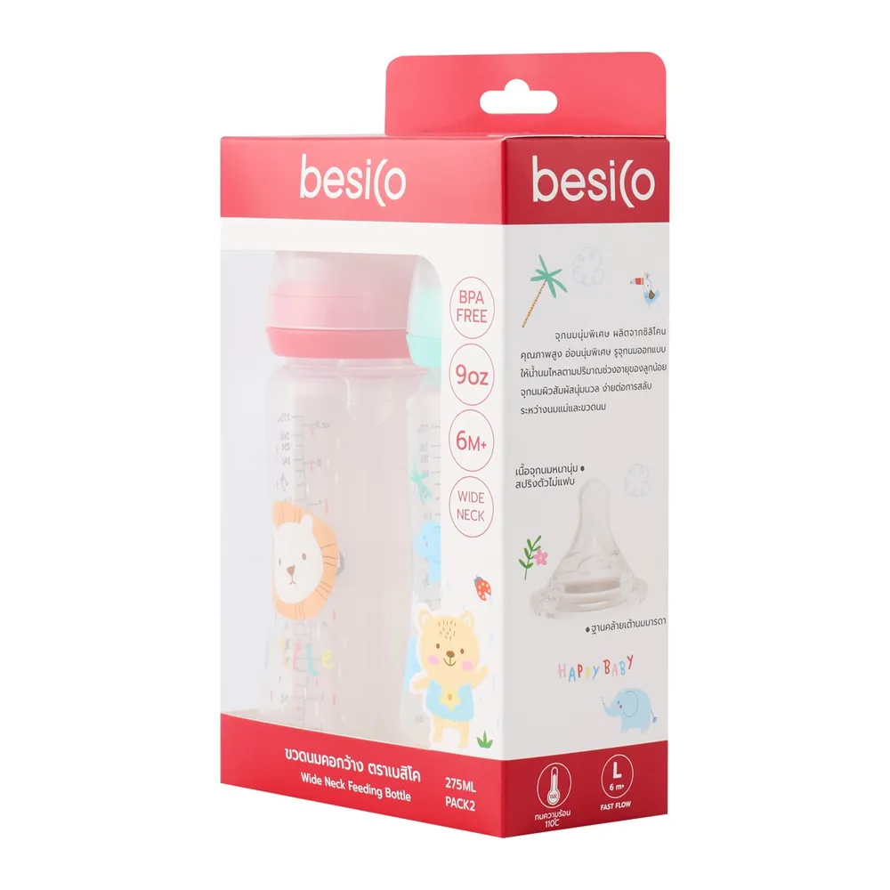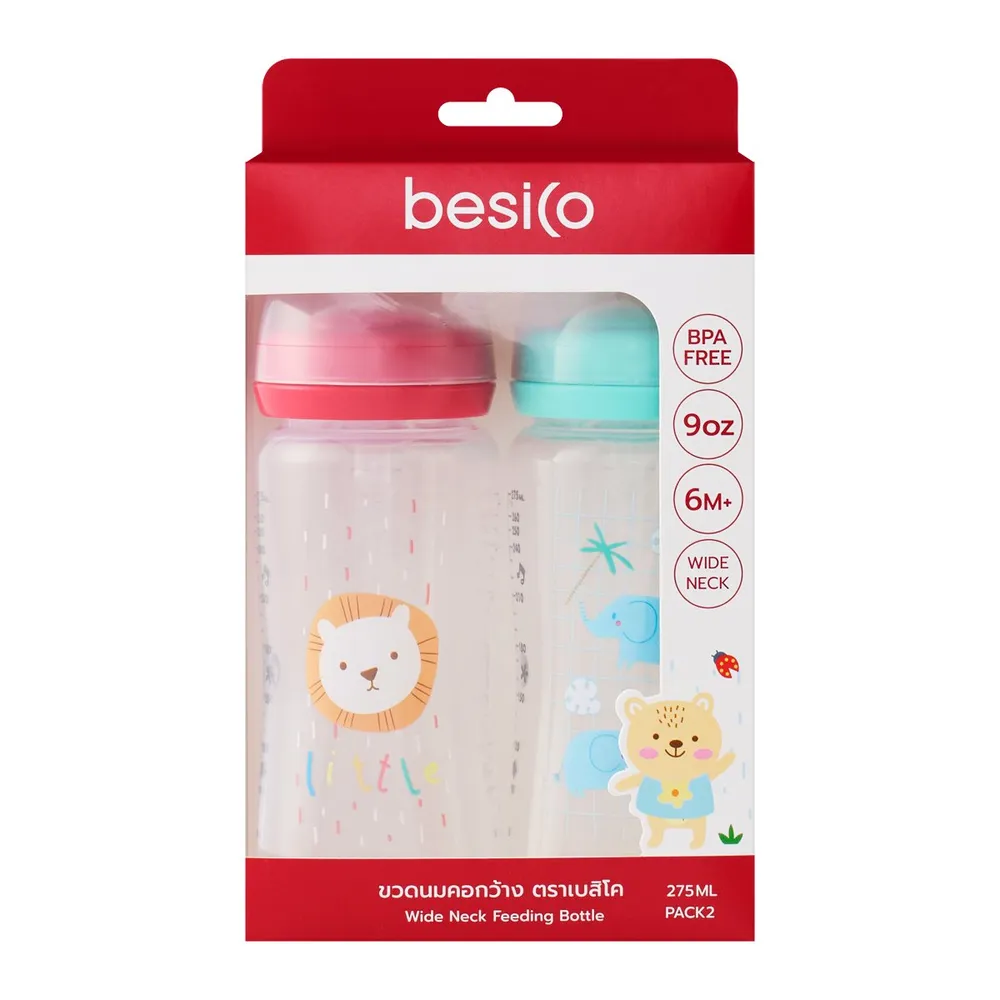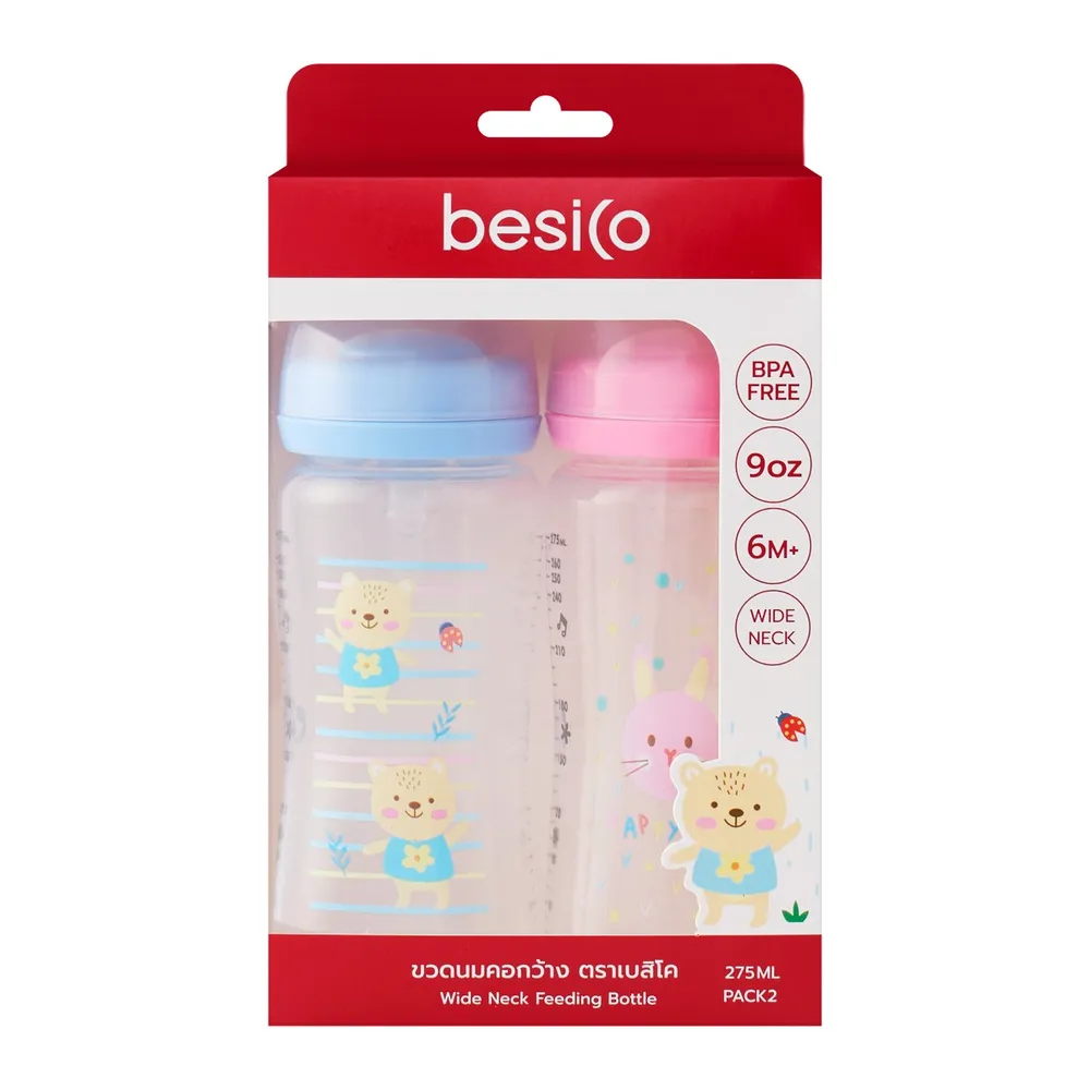 เบสิโค ขวดนมคอกว้าง รุ่น XB0056 275 มล. แพ็ค 2 คละแบบ