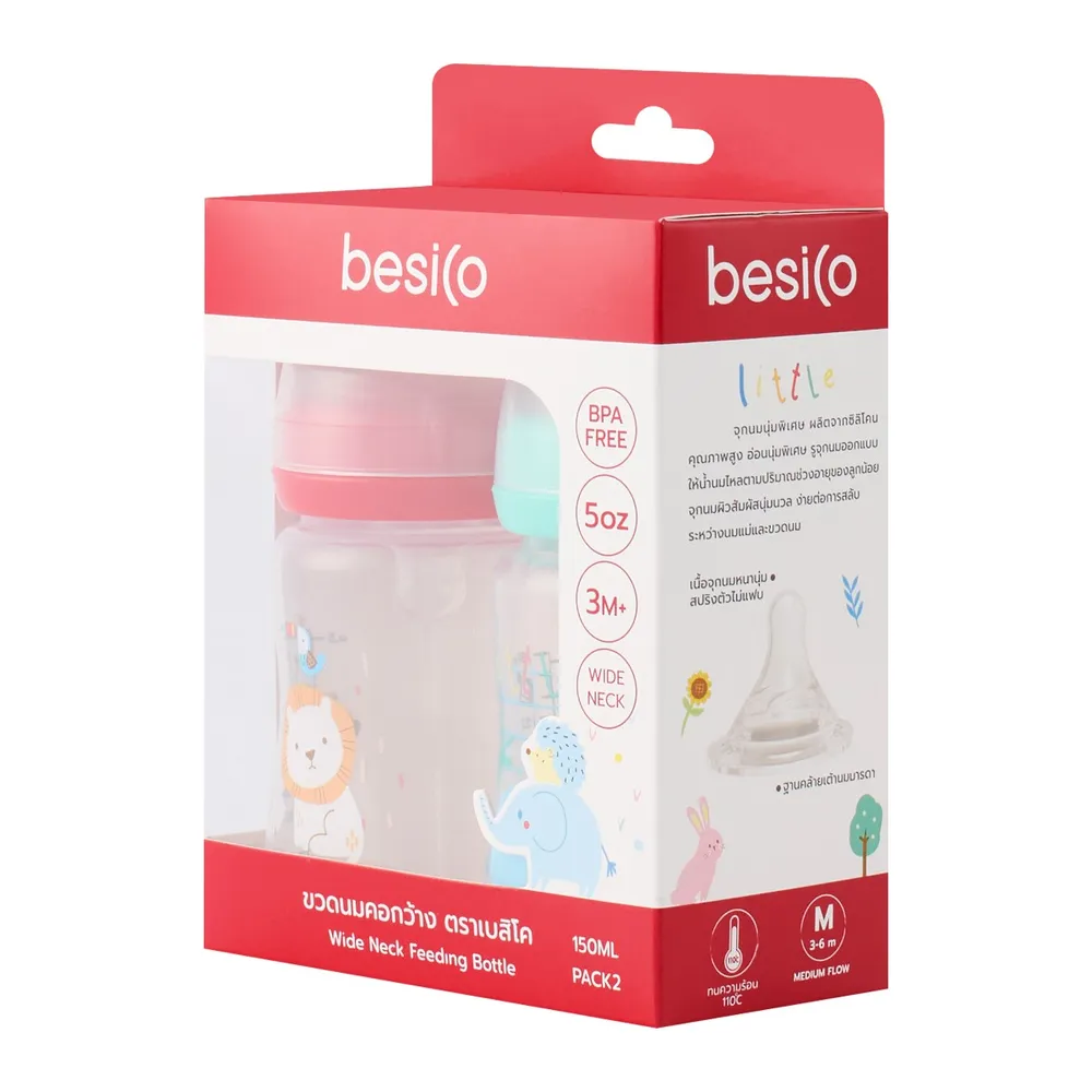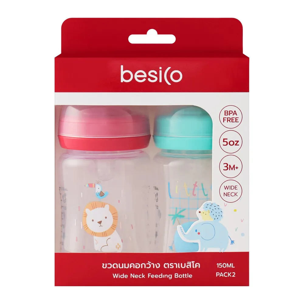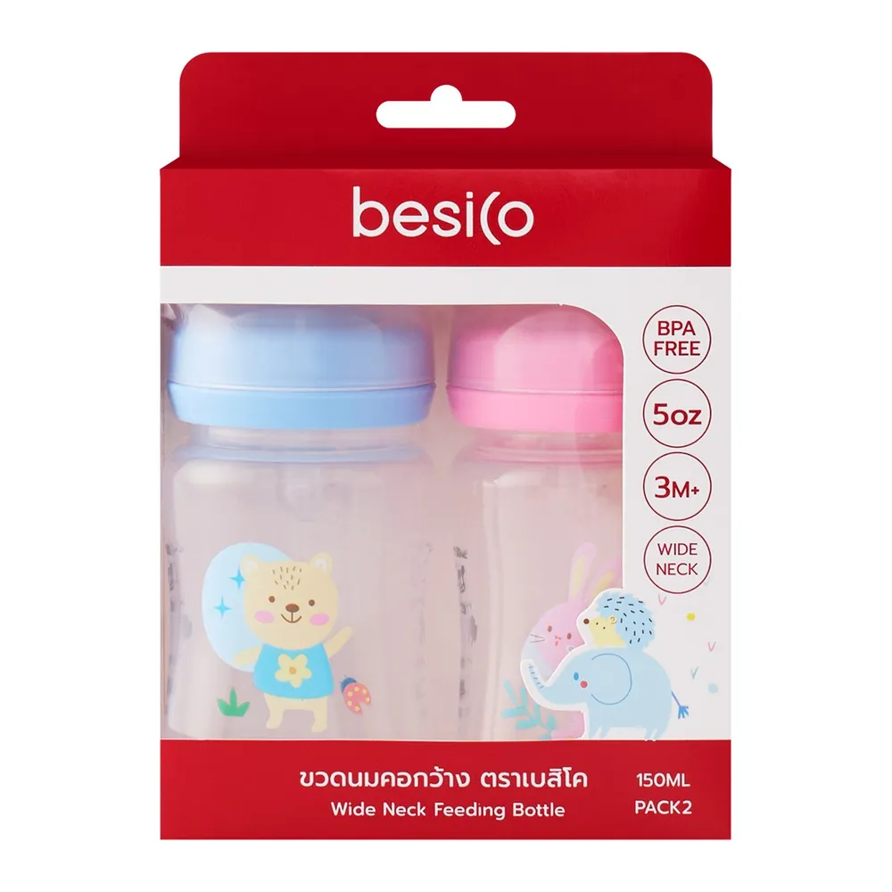 เบสิโค ขวดนมคอกว้าง รุ่น XB0055 150 มล. แพ็ค 2 คละแบบ