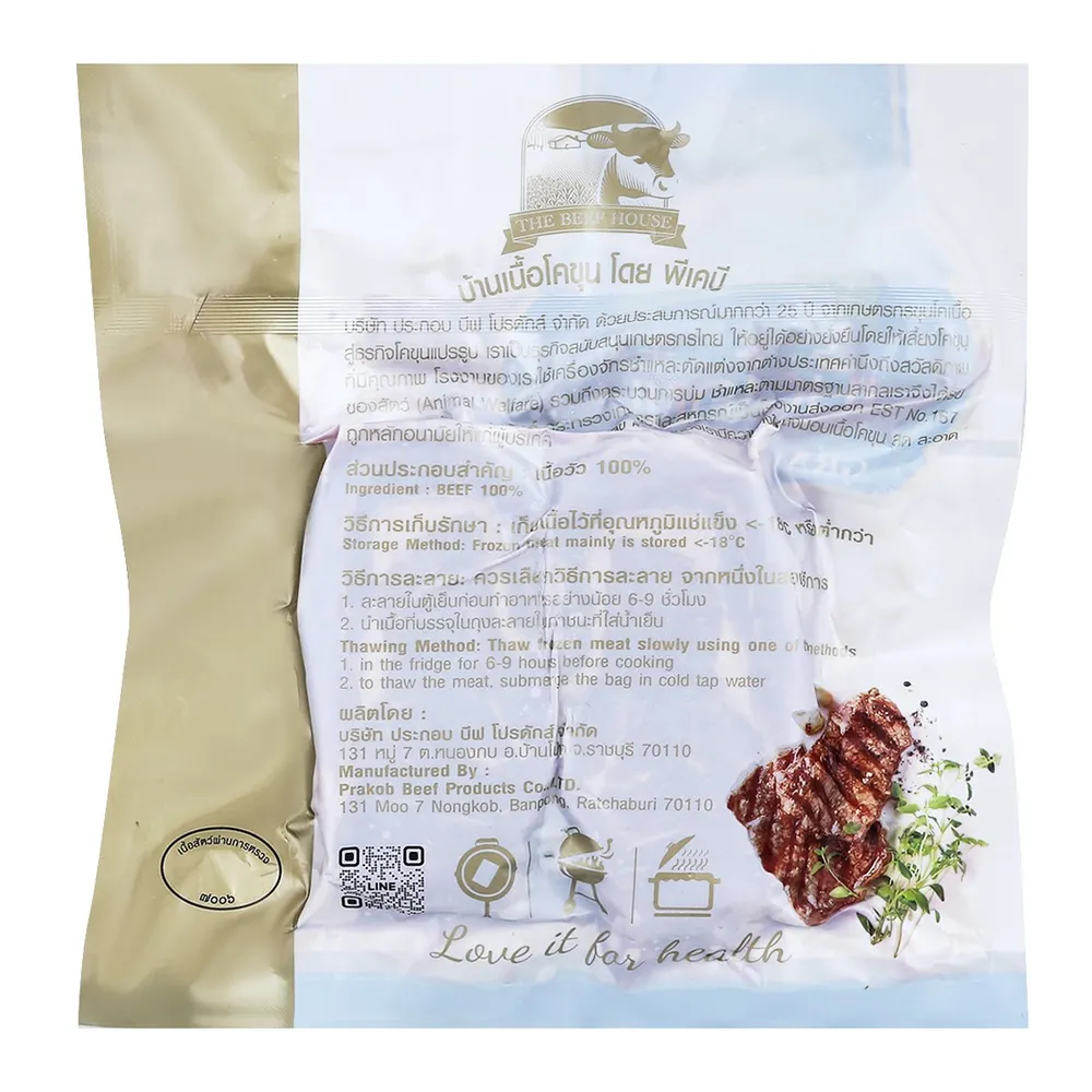 บ้านเนื้อโคขุน เนื้อสันแหลมโคขุนสเต็กแช่แข็ง 500ก