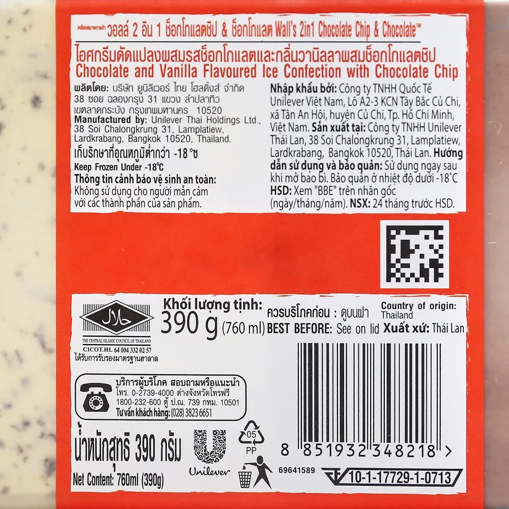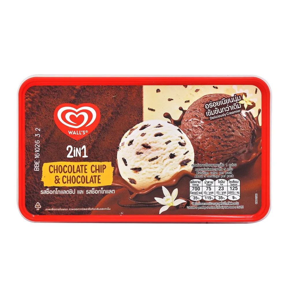 วอลล์ ไอศกรีม 2อิน1 รสช็อกโกแลตชิพและรสช็อกโกแลต 390 ก.