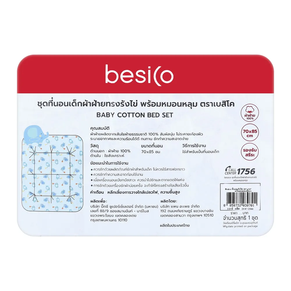 เบสิโค ชุดที่นอนเด็กผ้าฝ้ายทรงรังไข่ ขนาด 28 x 34 นิ้ว พร้อมหมอนหลุม