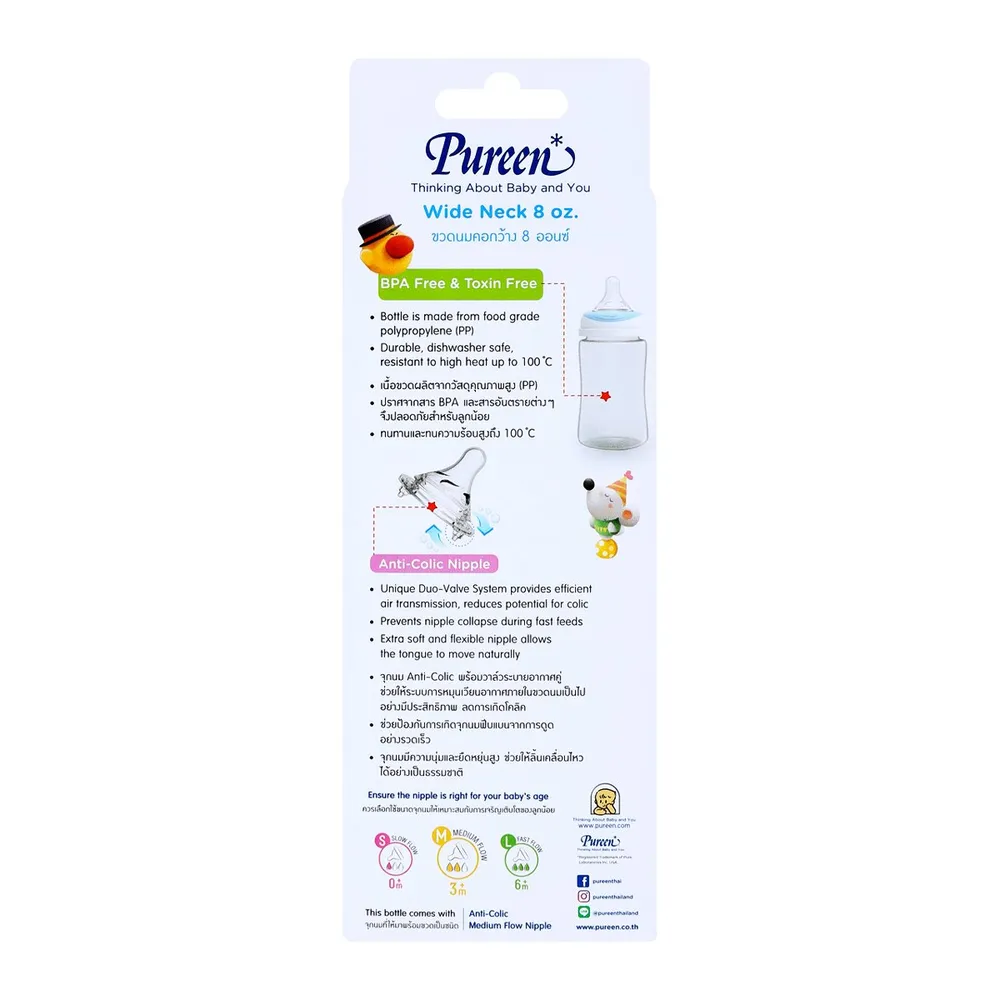 เพียวรีน ขวดนมคอกว้าง ขนาด 8 ออนซ์