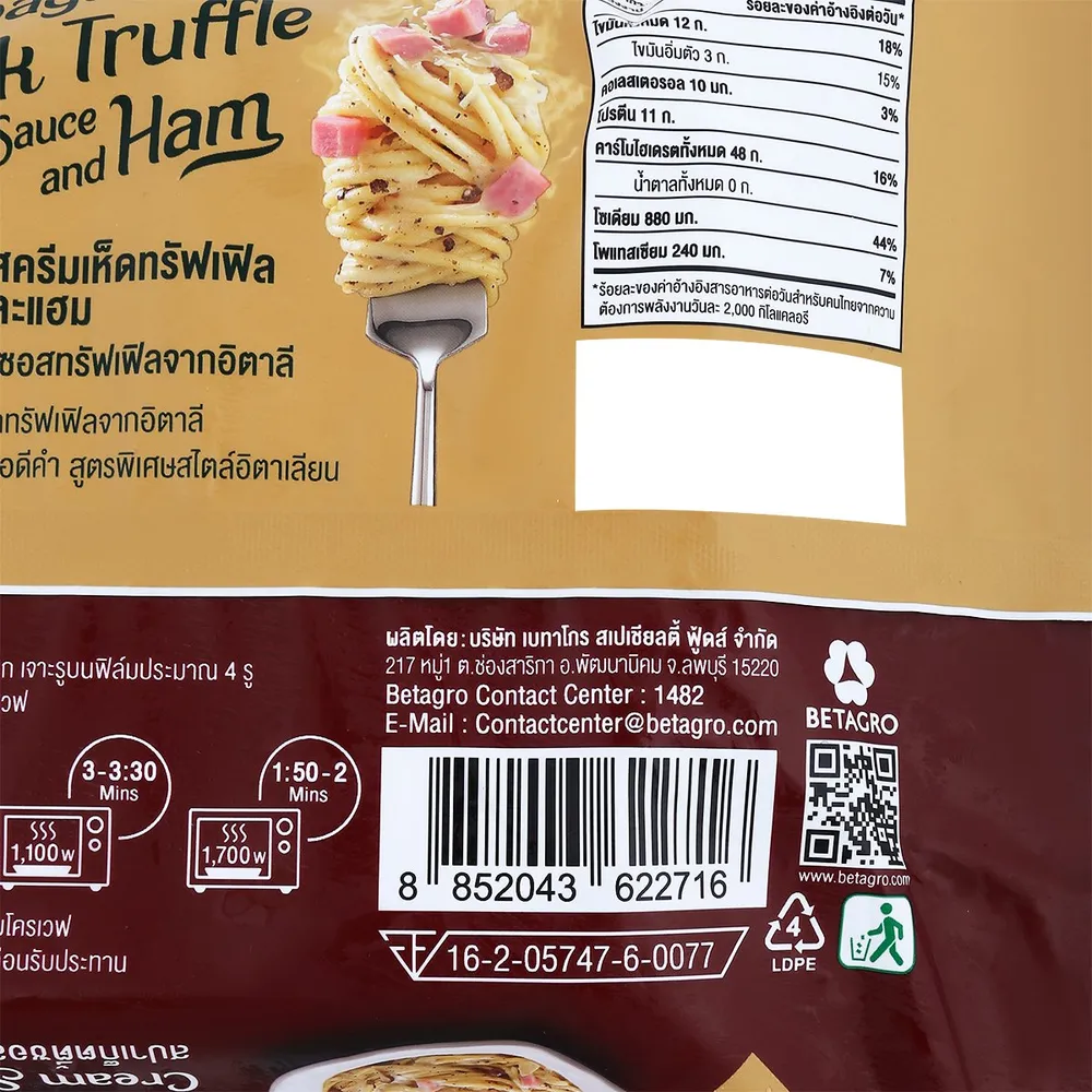 เบทาโกร อาหารปรุงสำเร็จ สปาเก็ตตี้ซอสครีมเห็ดทรัฟเฟิลและแฮม 250 ก.